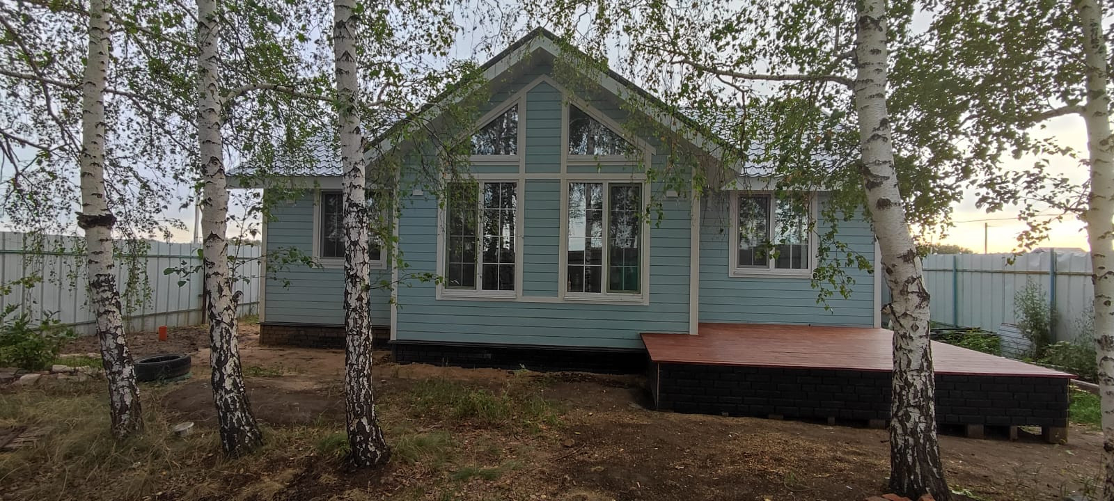 В доме 2 спальни, просторная гостиная с витражными окнами, потолками 4,5м и выходом на террасу в близи берез. Кухня с двумя окнами под одно из них можно установить столешницу, сан узел, котельная/кладовая.