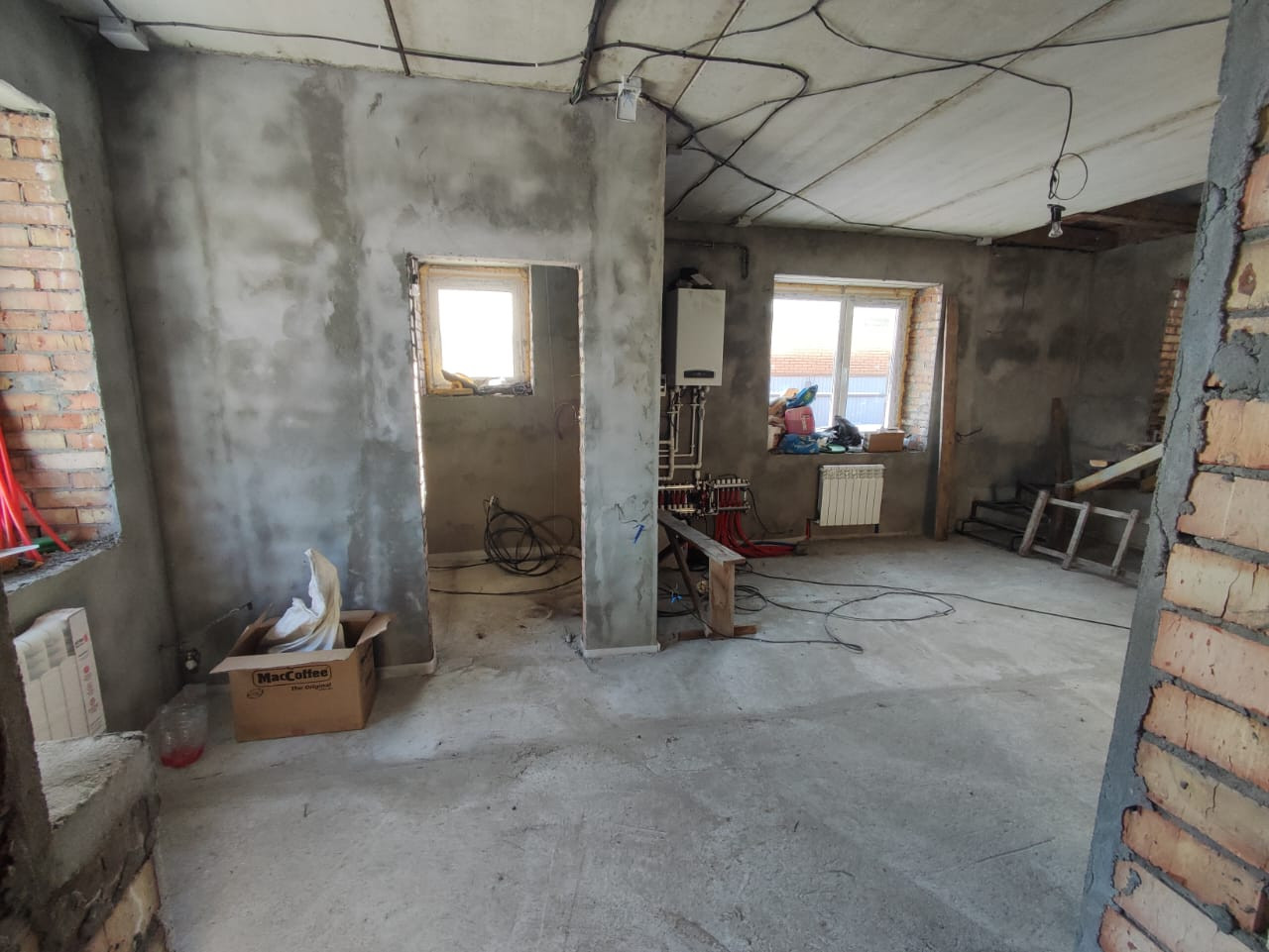 Дом строился "для себя"  и как следствие, изготовлен из качественных материалов. Стены оштукатурены, электроразводка по всему дому, установлены радиаторы, металлическая входная дверь.