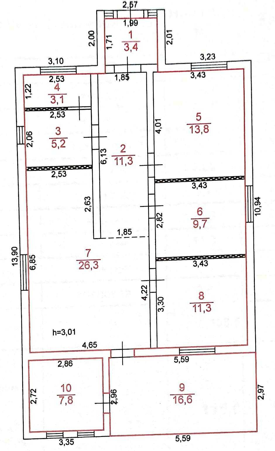 Жилая площадь 63.1 м2