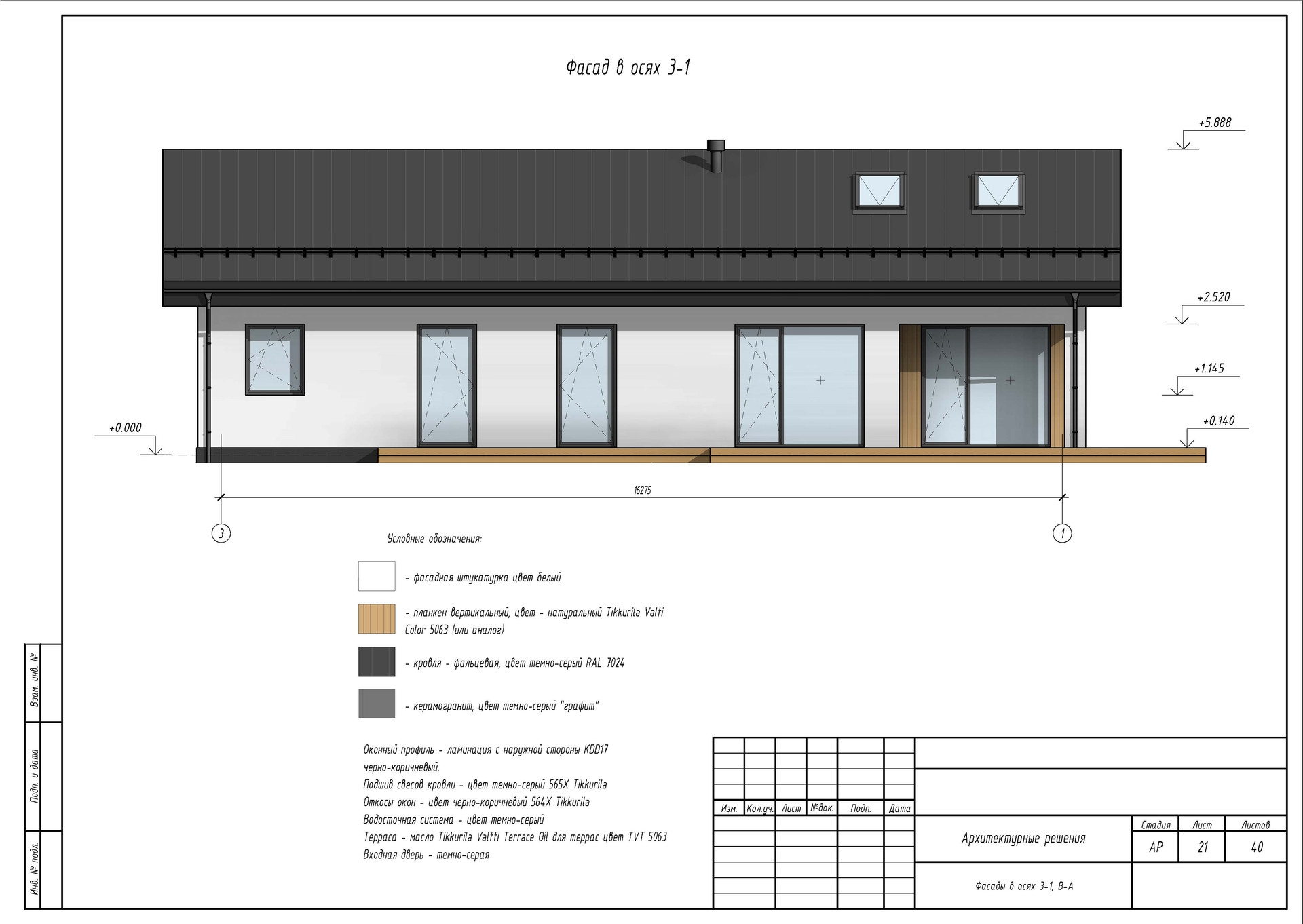 Фундамент  мощная монолитная плита 300 мм толщиной под всем домом и террасой. Предварительно проводилась геология грунта.