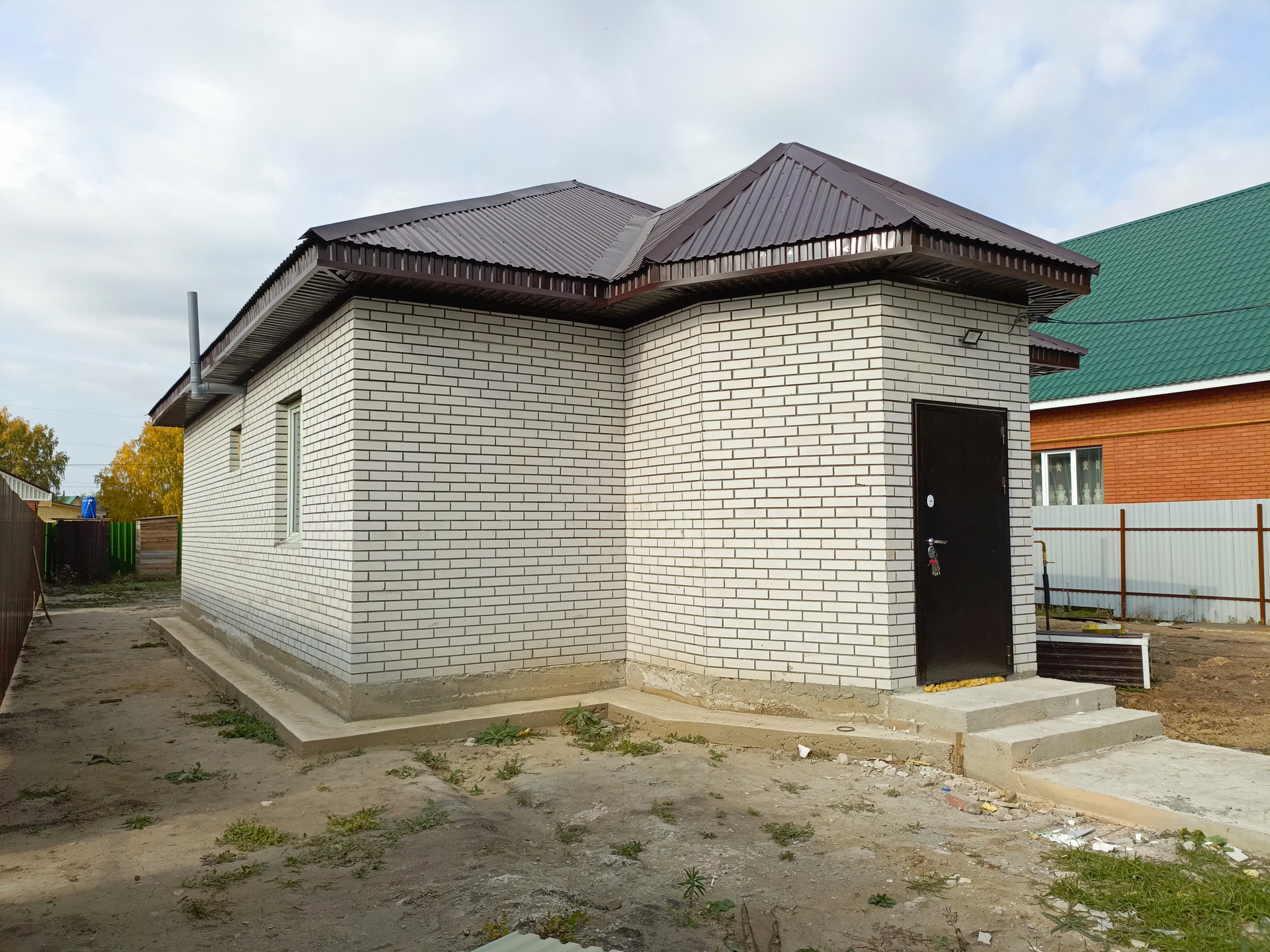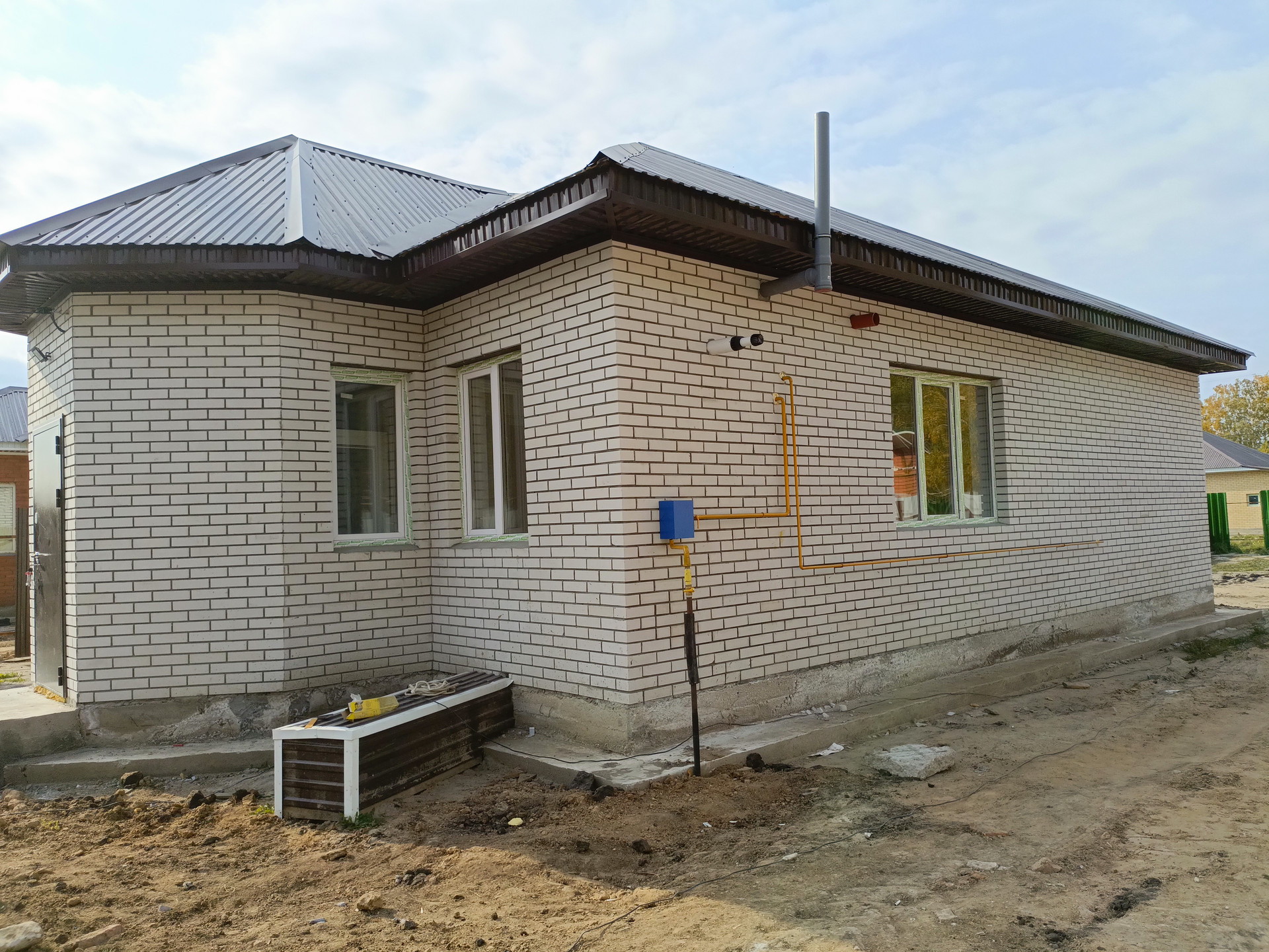 Предлагаем к продаже новый, полностью благоустроенный дом. Газовое отопление, электричество 380 (15 Квт), канализация - септик, водопровод - своя скважина с чистой, вкусной питьевой водой (фильтр установлен) на улице имеется центральный водопровод, можно при желании подключиться к нему. Дом построен из автоклавного газобетона, и обложен облицовочным кирпичом. Фундамент монолитный, на сваях, площадь 118 кв.м. Удачная планировка, три просторные, изолированные спальни, большая кухня-гостиная, отдельная котельная, санузел и прихожая(тамбур). В доме основные работы выполнены, натянуты потолки, установлены межкомнатные двери, на полу в жилых комнатах ламинат, в прихожей, в санузле и в котельной на полу керамогранит. Санузел и котельная полностью обложены кафелем. Все коммуникации подключены и работают. Двор огорожен забором из профлиста, во дворе имеются гараж и баня.
