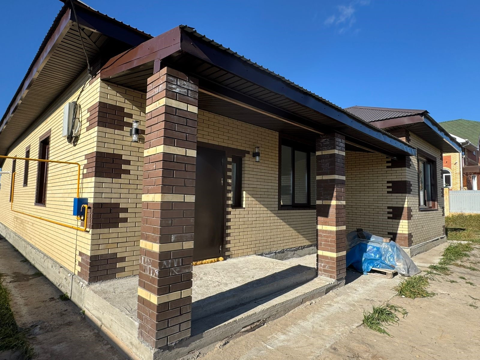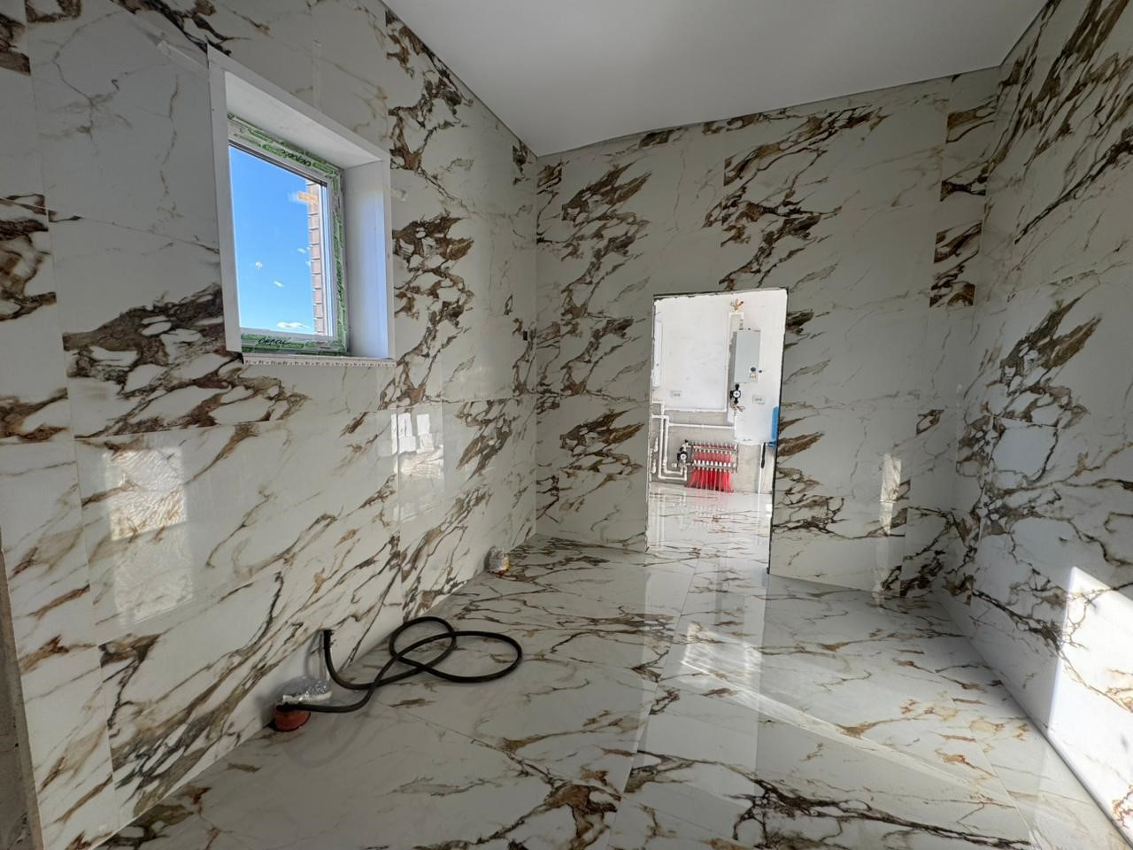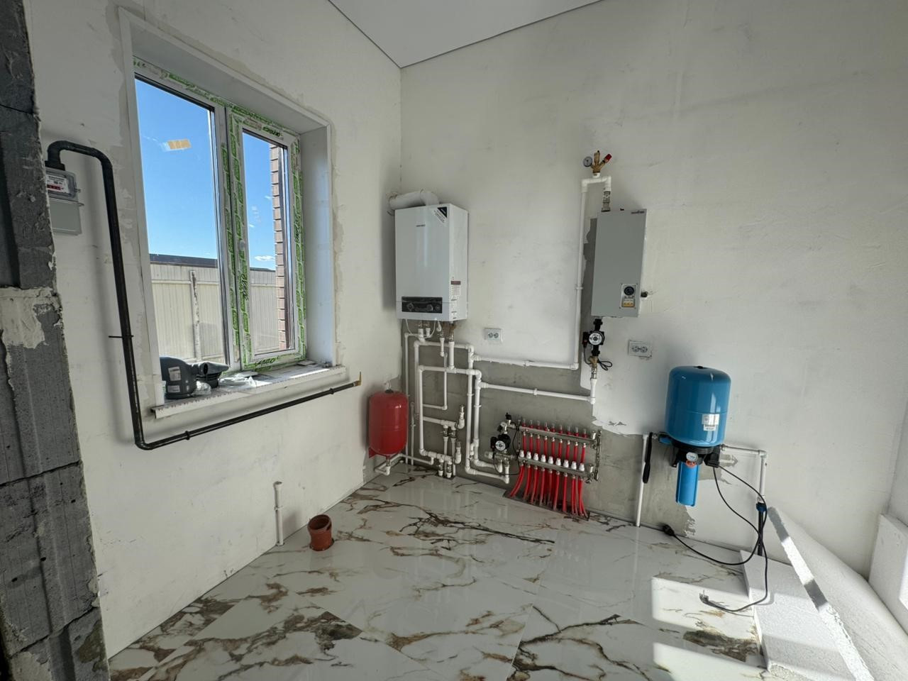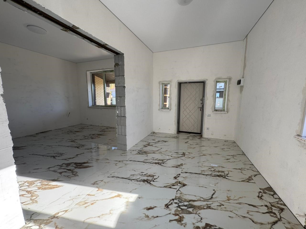 В доме все коммуникации :газовое отопление, электрическое отопление, свет, вода, канализация септик. По всему дому теплые полы, улучшенная предчистовая отделка. Прихожая, кухня-гостиная, котельная, санузел с отделкой керамогранит.