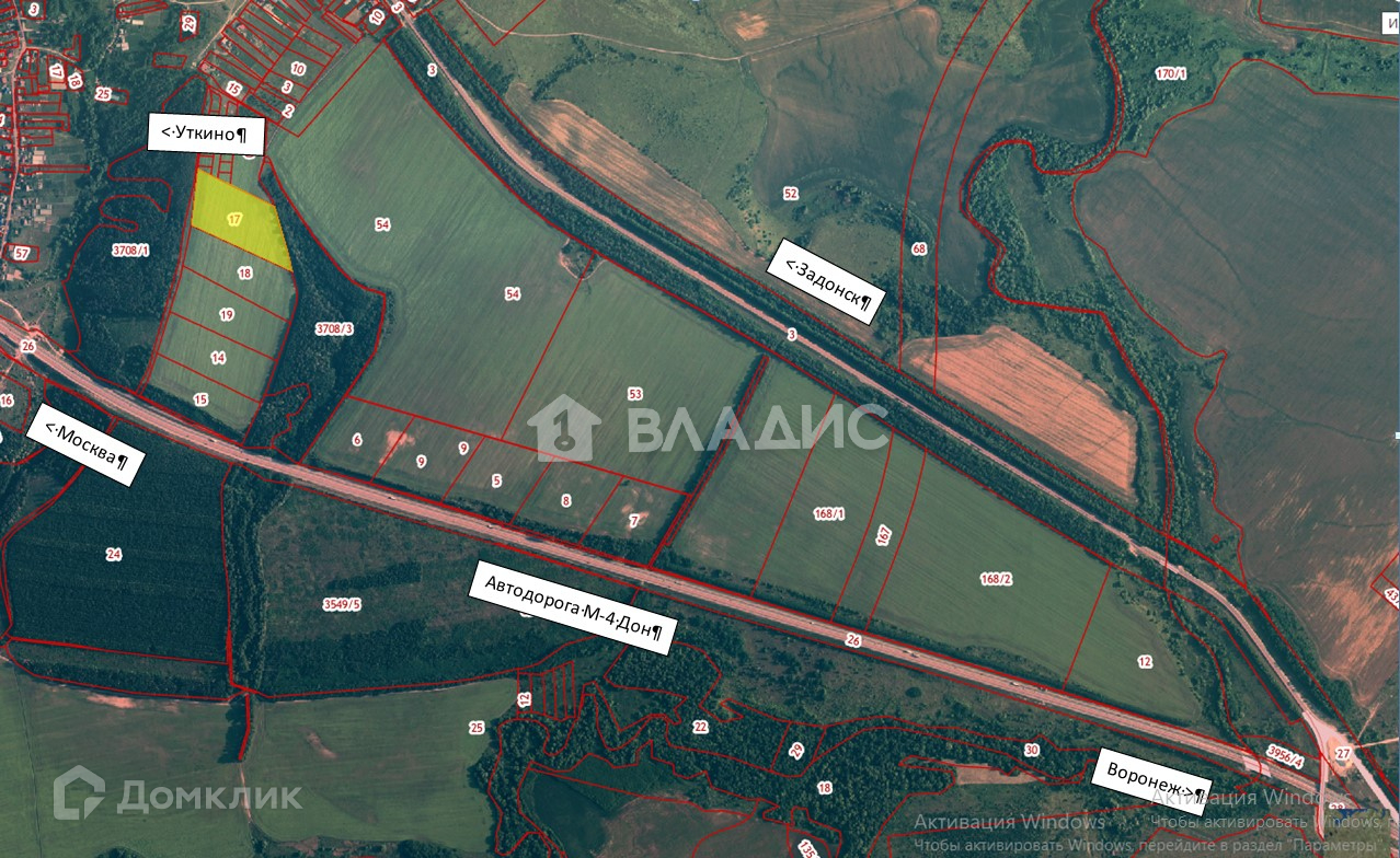 Продается земельный участок площадью 4,1га недалеко от автодороги М-4 Дон.