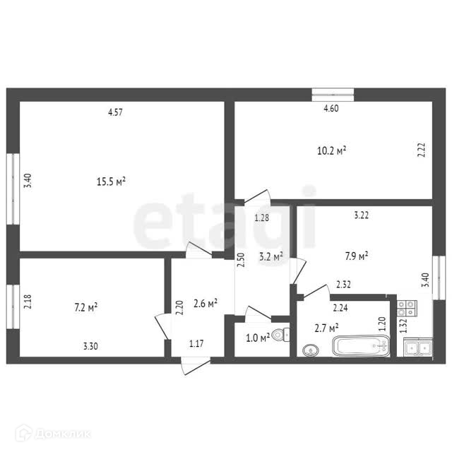 Общая площадь 50.3 м2
