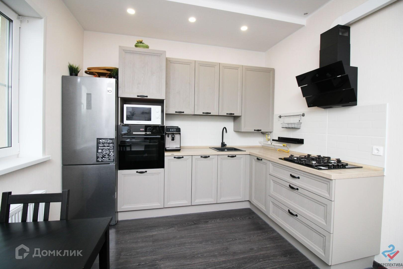 При продаже остается кухонный гарнитур со встроенной техникой и шкаф-купе в спальне.