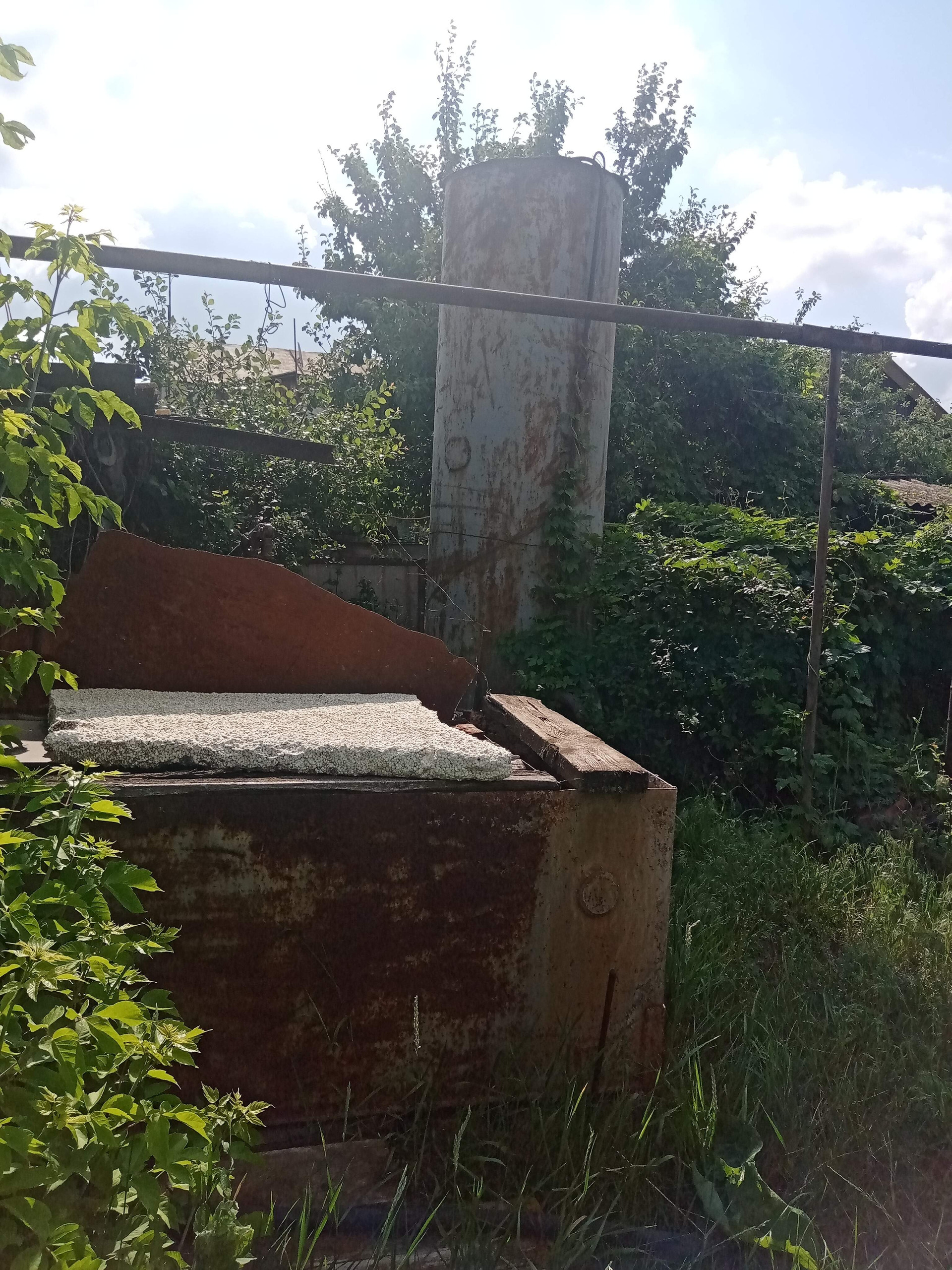 На участке есть баня , 2 блочных гаража с погребом, кирпичный сарай для содержания животных, в огороде расположена скважина, много плодовых деревьев.