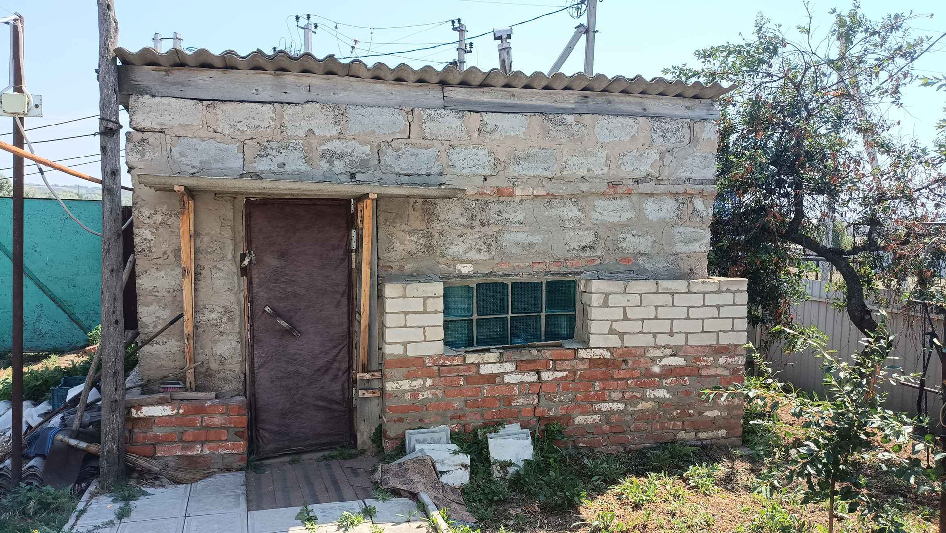 Сарай - 14.8 кв.м. Материал стен - смешанный (кирпич и дерево).