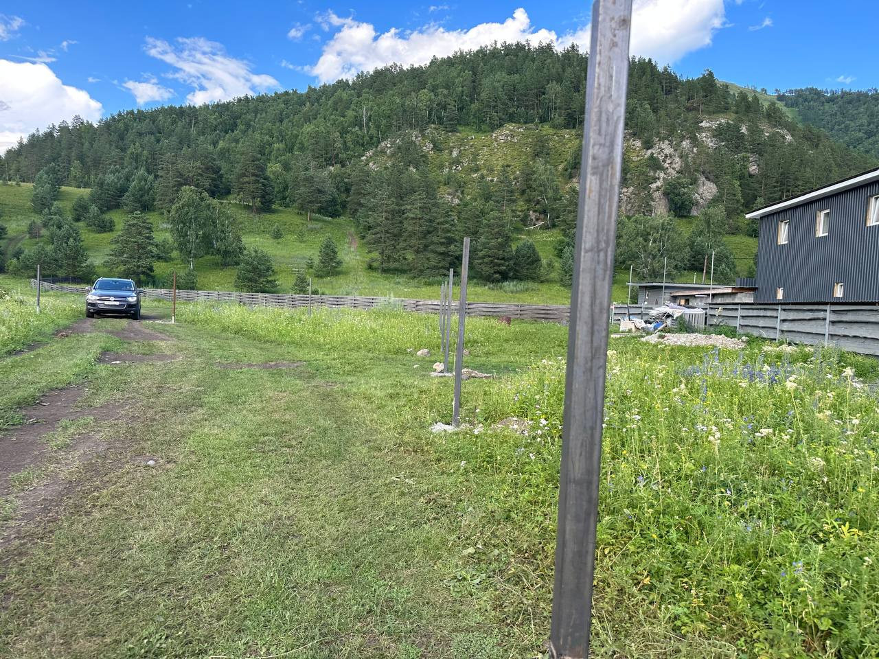✅По периметру участка залиты железные столбики;