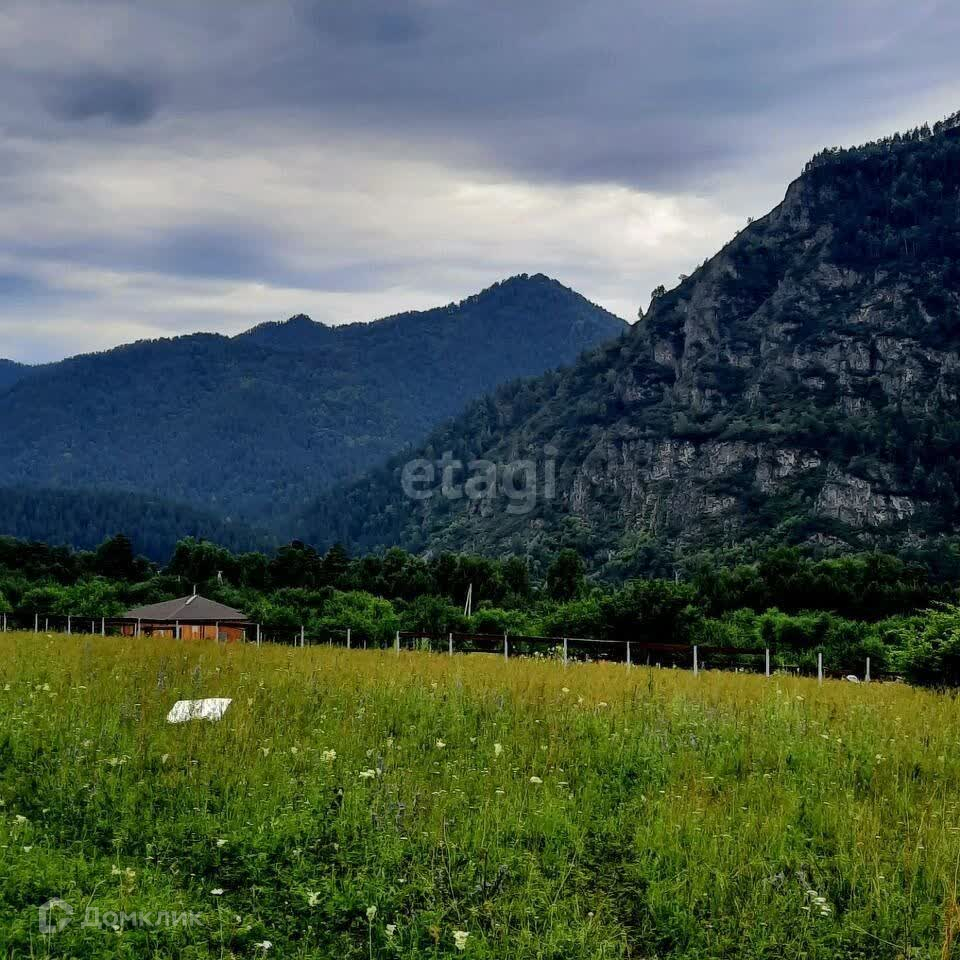 Участок находится на возвышенности. Рядом протекает горная речка. Красивый вид, в окружении гор. Но вместе с тем вся инфраструктура рядом. До Чемала 20 км по хорошей дороге. Свежий воздух.