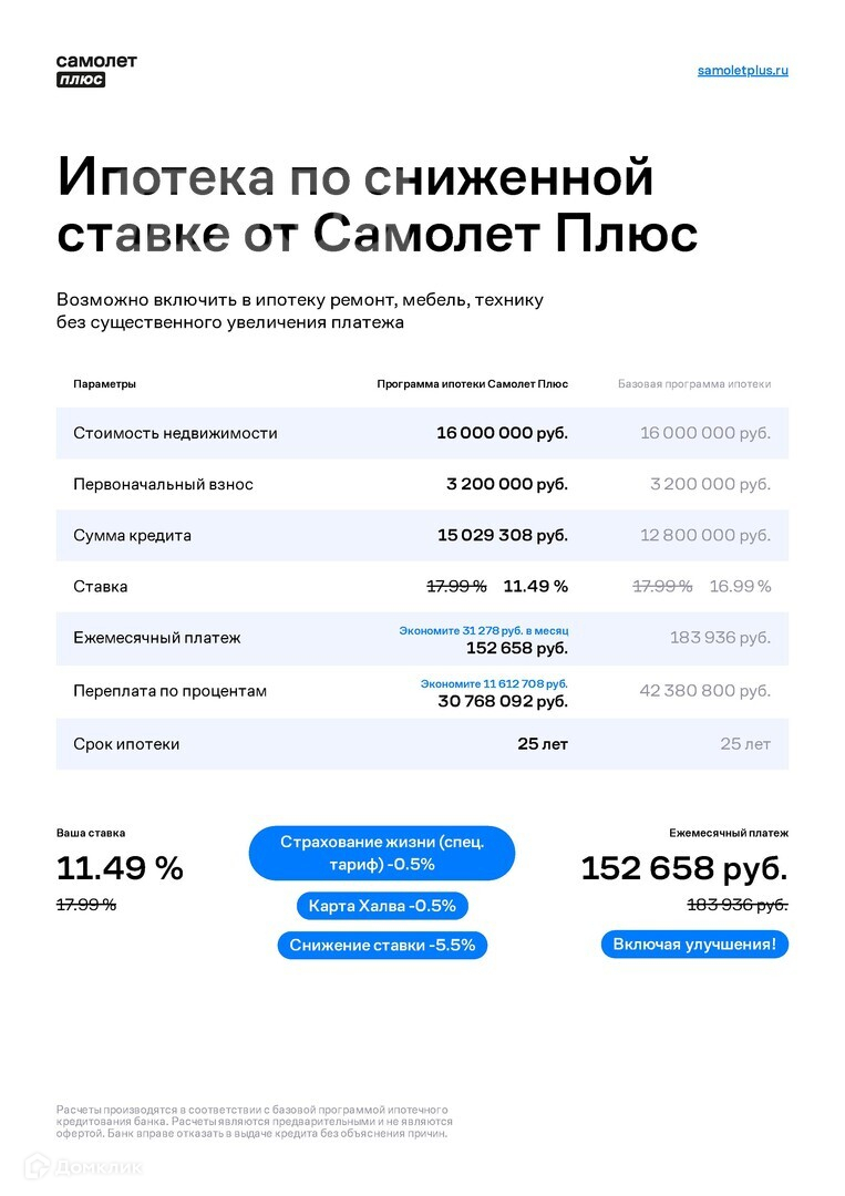 Данный объект можно купить по субсидированной процентной ставке от 11,5%, что существенно снизит ежемесячный платеж по ипотеке!!!