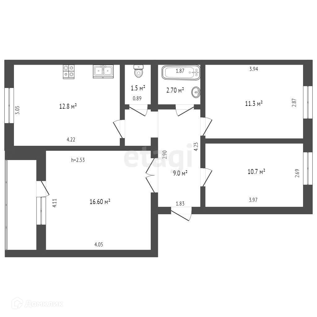 Общая площадь 69.8 м2