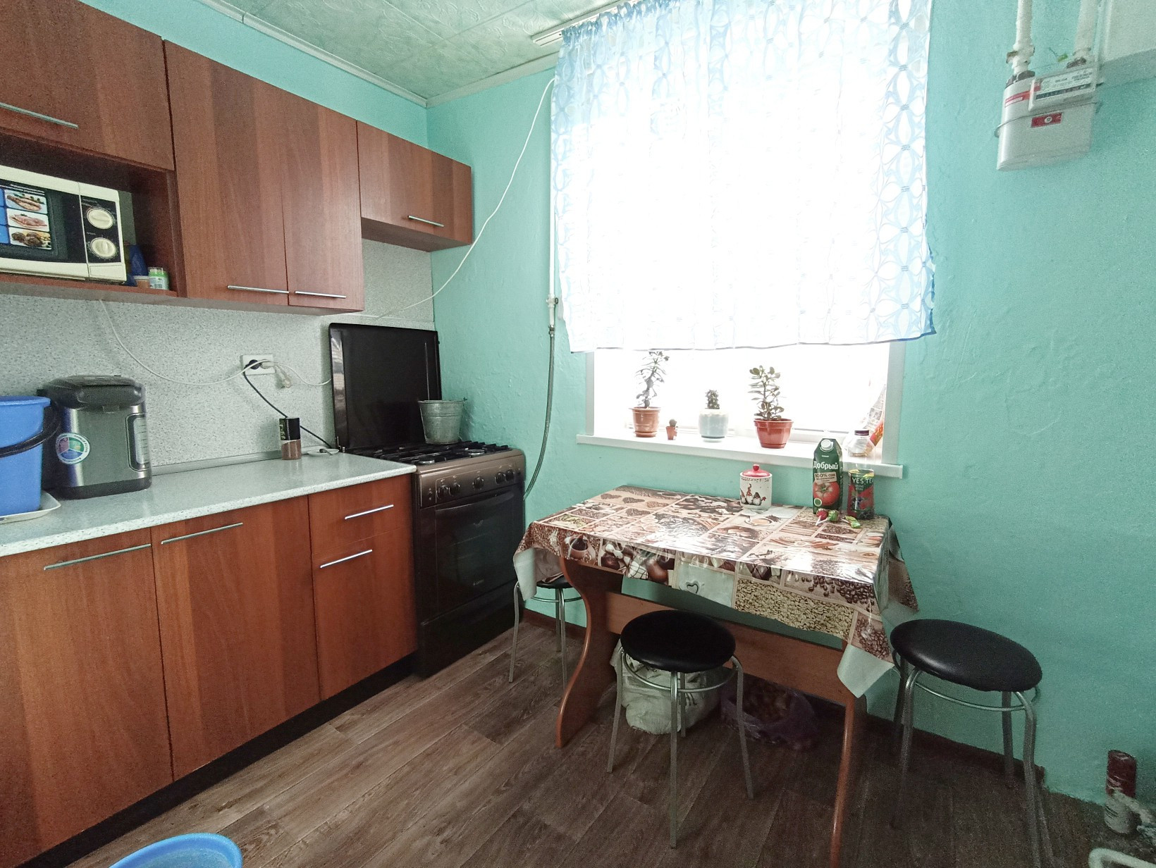 Все удобства расположены в районном центре, в с.Нордовке(14 км езды): школа, садик, фельдшерский пункт, магазины, почта, Сбербанк