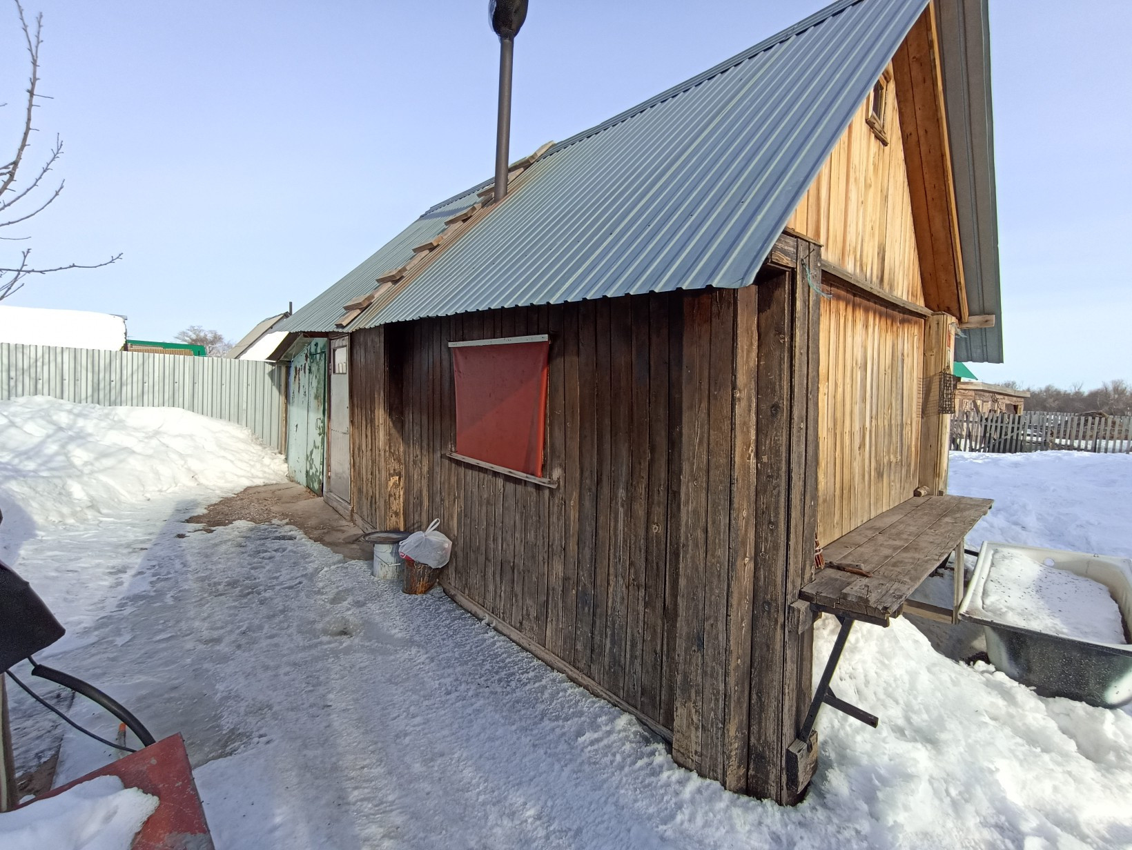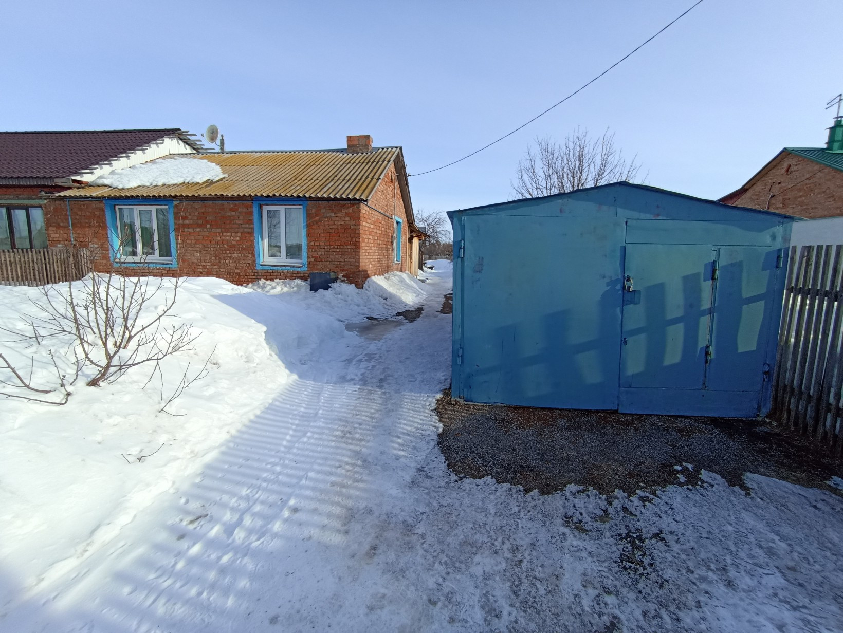 Участок 9,5 соток. На участке находится: бревенчатая баня, уборная, гараж,сарай, теплица, большое количество хозяйственных построек для разведения животноводства. Насаждения: яблоня, клубника, смородина.