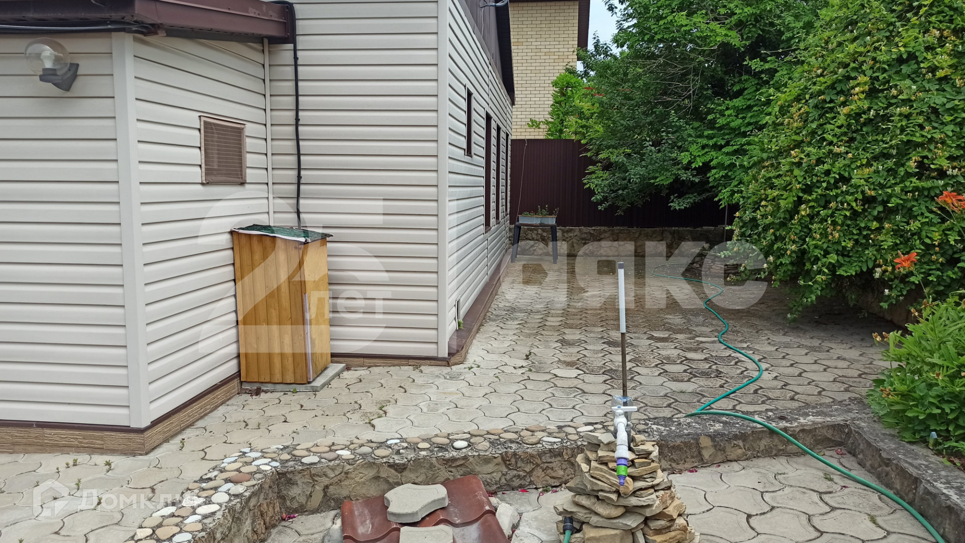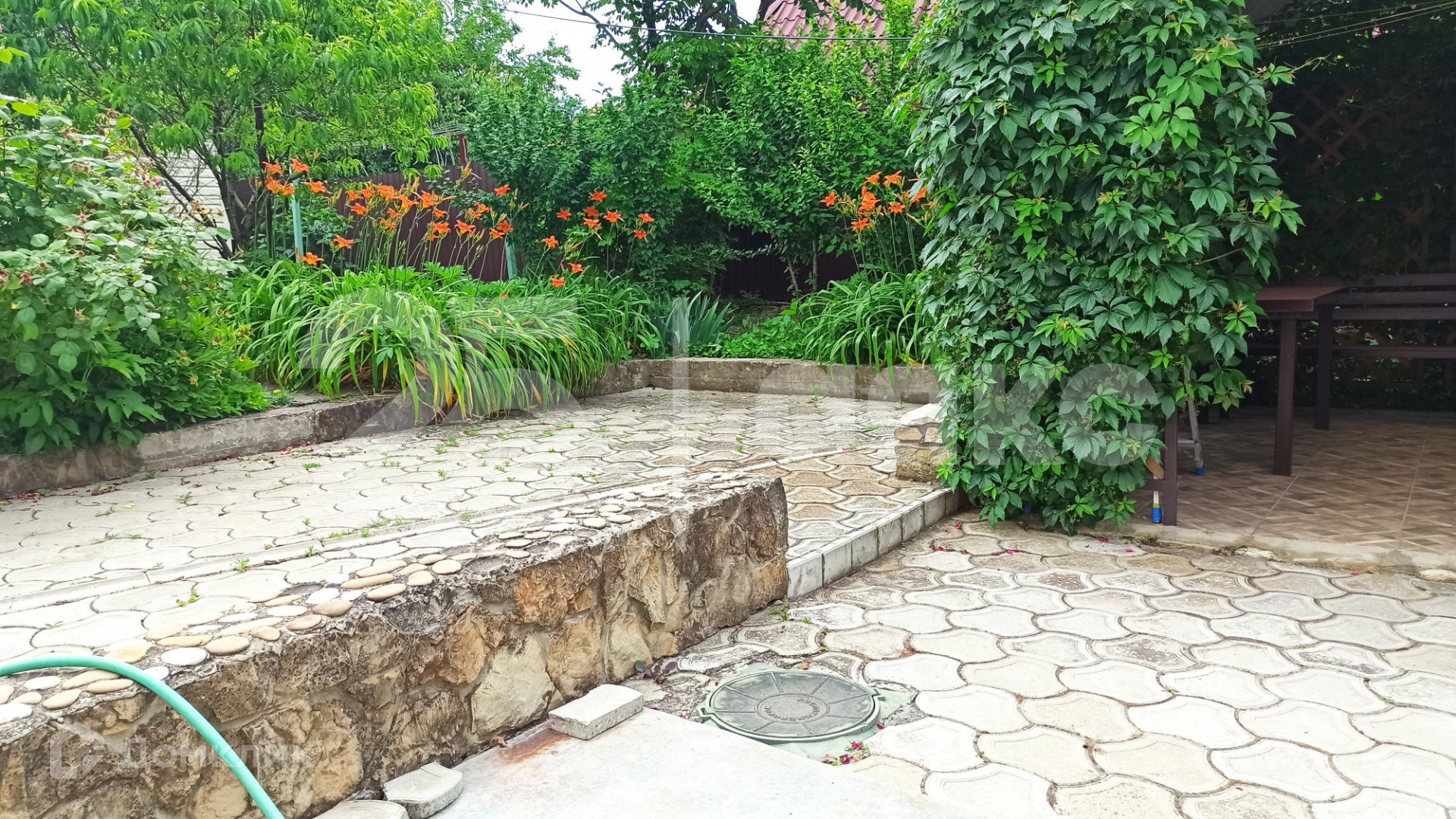 Большой двор. Заезд для авто. Двое откатных ворот. Беседка. Зона барбекю. Есть место для установки бассейна.