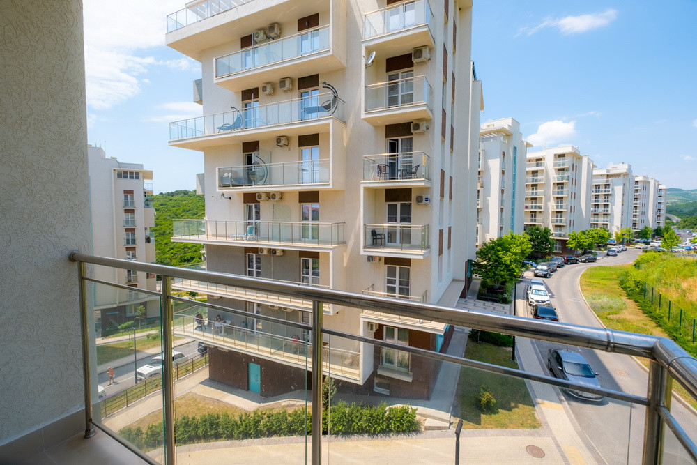 Для жильцов комплекса закрытый пляж  в 5-минутной доступности прогулочным шагом, по асфальтированной комфортной дороге.