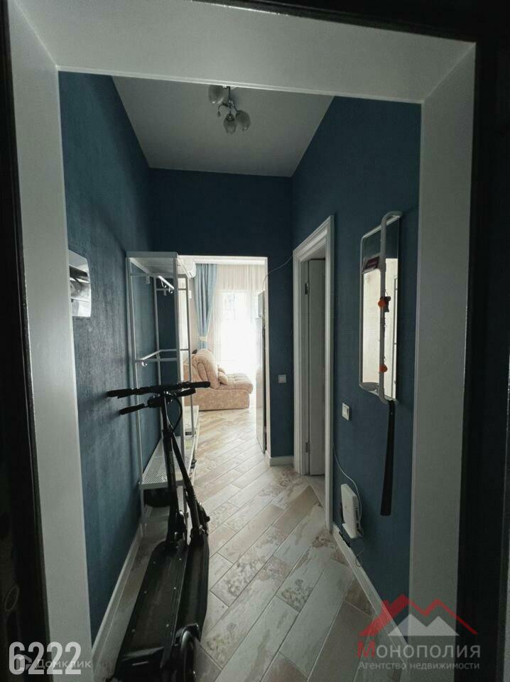Продается  1 комнатная квартира студия с ремонтом, с мебелью и бытовой техникой. Все остается. Квартира видовая.    Балкон большой c выходом из кухни и комнаты. В соседнем доме магазин, во дворе нижнего дома детская и спортивная площадка, бассейн. ЖК Анаполис закрытый, с огороженной территорией. До моря 3-5 минут неспешным шагом. Пляж галечный, море чистое, есть несколько кафе, лежаки под навесом за дополнительную плату.