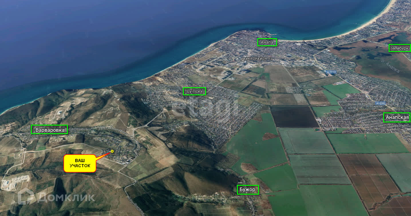 Продаю земельный участок в 6 км от Черного моря. Участок с прекрасным видом на море и горы, площадью 8 соток. Фасад участка 21 м, глубина 38 м. Категория земельного участка - земли населенных пунктов, вид разрешенного использования - для ведения личного подсобного хозяйства. Участок ровной прямоугольной формы. Коммуникации - 15 квт электричество - столб возле участка. Инфраструктура: Село Варваровка находится примерно в 5 километрах на юго-западе от Анапы. Здесь есть - школа, детский сад, почта, дом культуры, церковь, а также необходимые продуктовые и хозяйственные магазины. Расстояние от участка до средней школы № 20, детского сада № 33, дома культуры 2,5 - 3 км. Один собственник на участок, без обременений, все документы проверены и готовы к сделке!