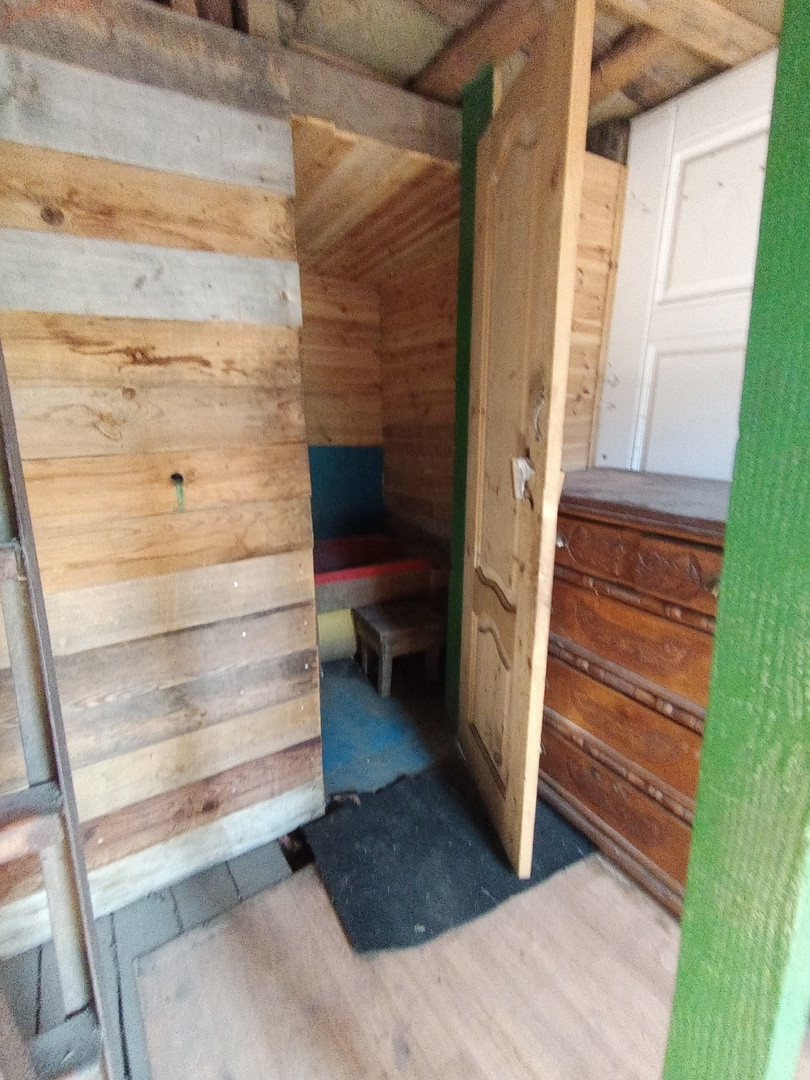 Туалет на улице, есть открытый пристрой с навесом.