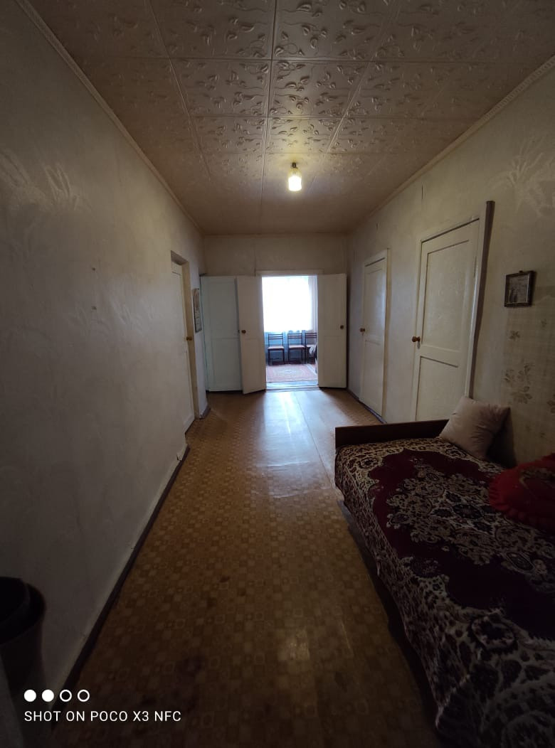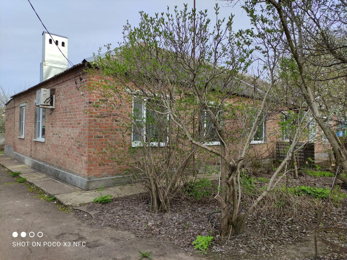 Кирпичный дом, 4 жилых комнаты (зал и 3 спальни), кухня 10 кв.м, с/у совместный, коридор 15 кв.м. Газ, свет, вода из скважины (насос автомат). Во дворе летняя кухня, гараж, кирпичный сарай. Сад, цветник, огород. Двор асфальт. Дом в центре населённого пункта. 100 метров до администрации, дома культуры, аптеки, рынка, магазинов, остановки общественного транспорта. Цена 1800 т.р.