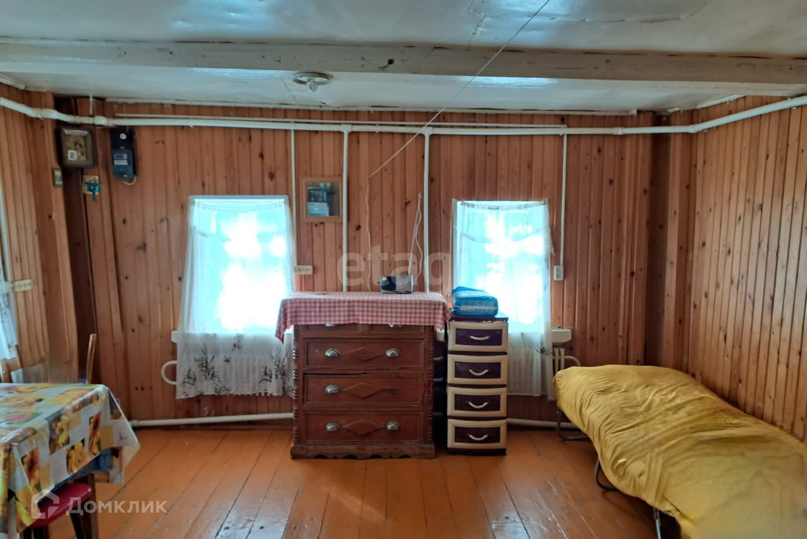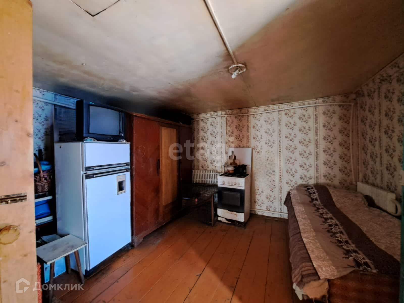 Площадь дома 65 м2, имеет две комнаты и свежую пристройку из пеноблоков, в которой можно организовать кухню и санузел.