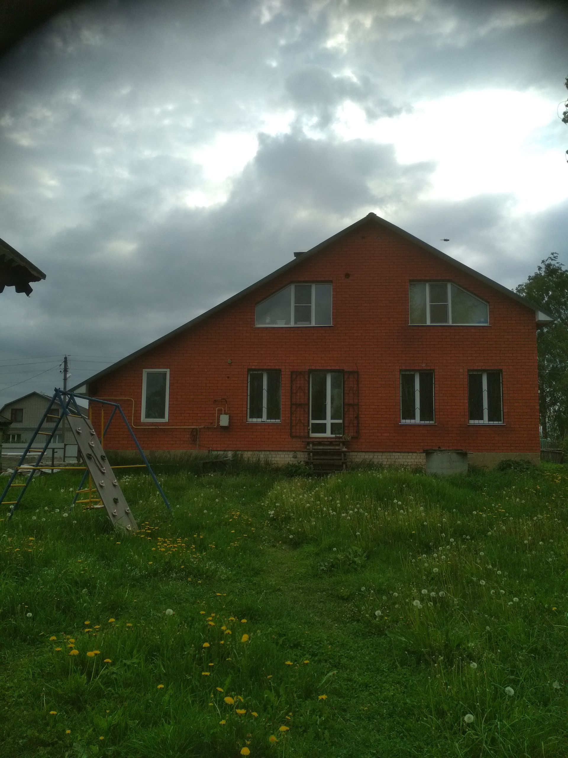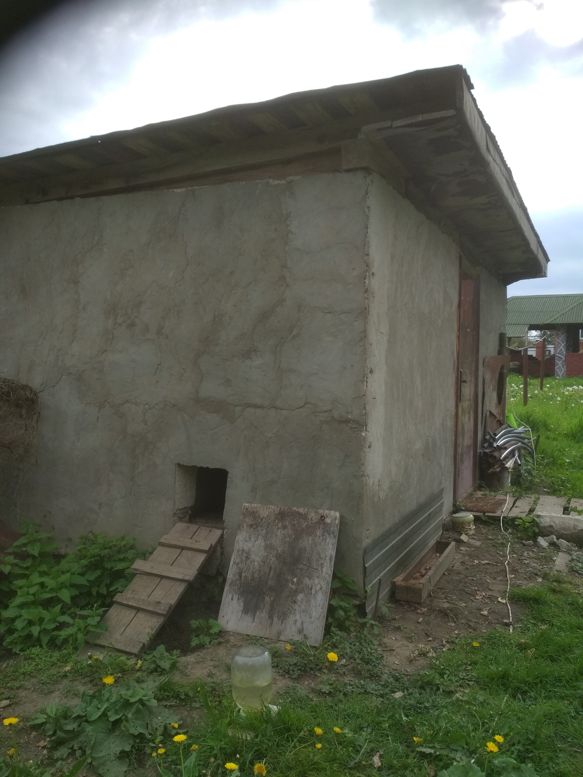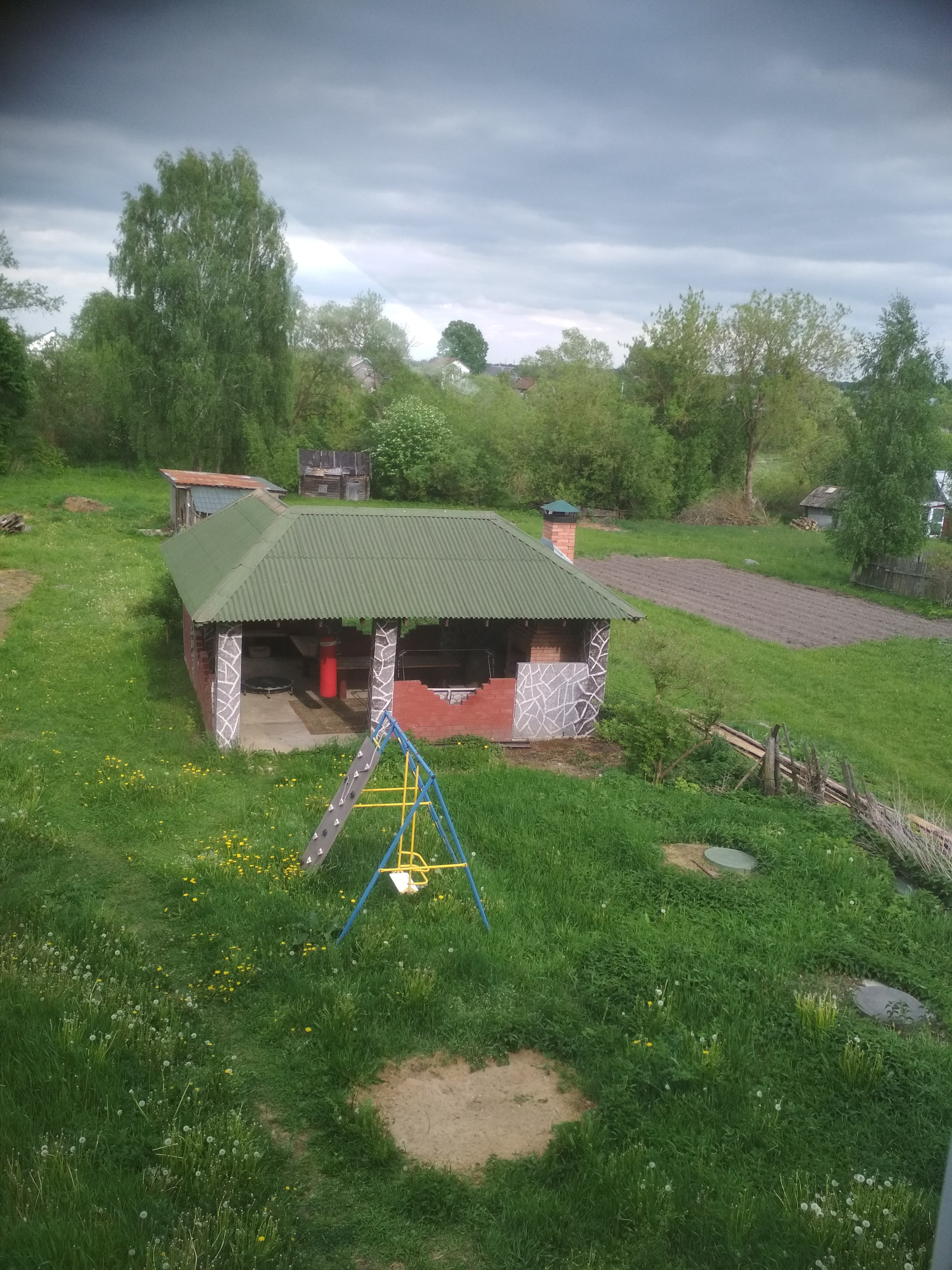 Во дворе- большая кирпичная беседка с тондиром, с барбекю, сарай для кур, большая теплица, грядки с клубникой и грядки для овощей и зелени. Сухой спуск к воде, установлены мостики.