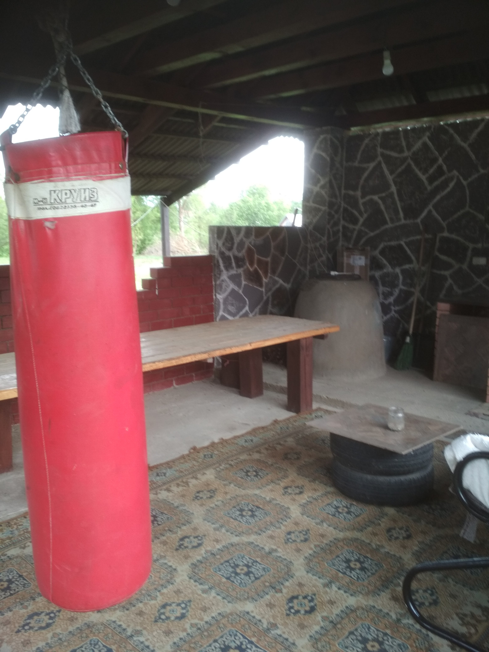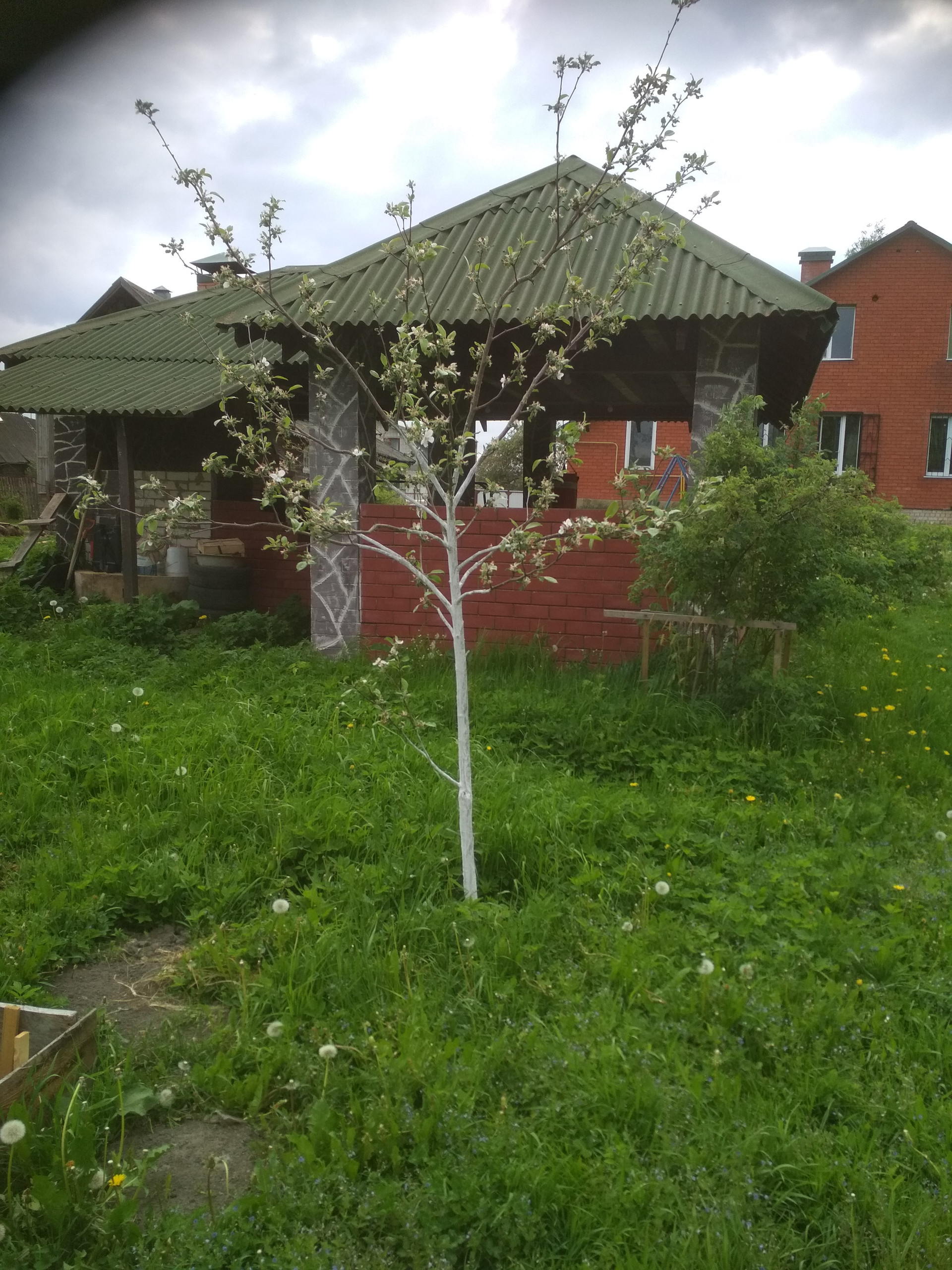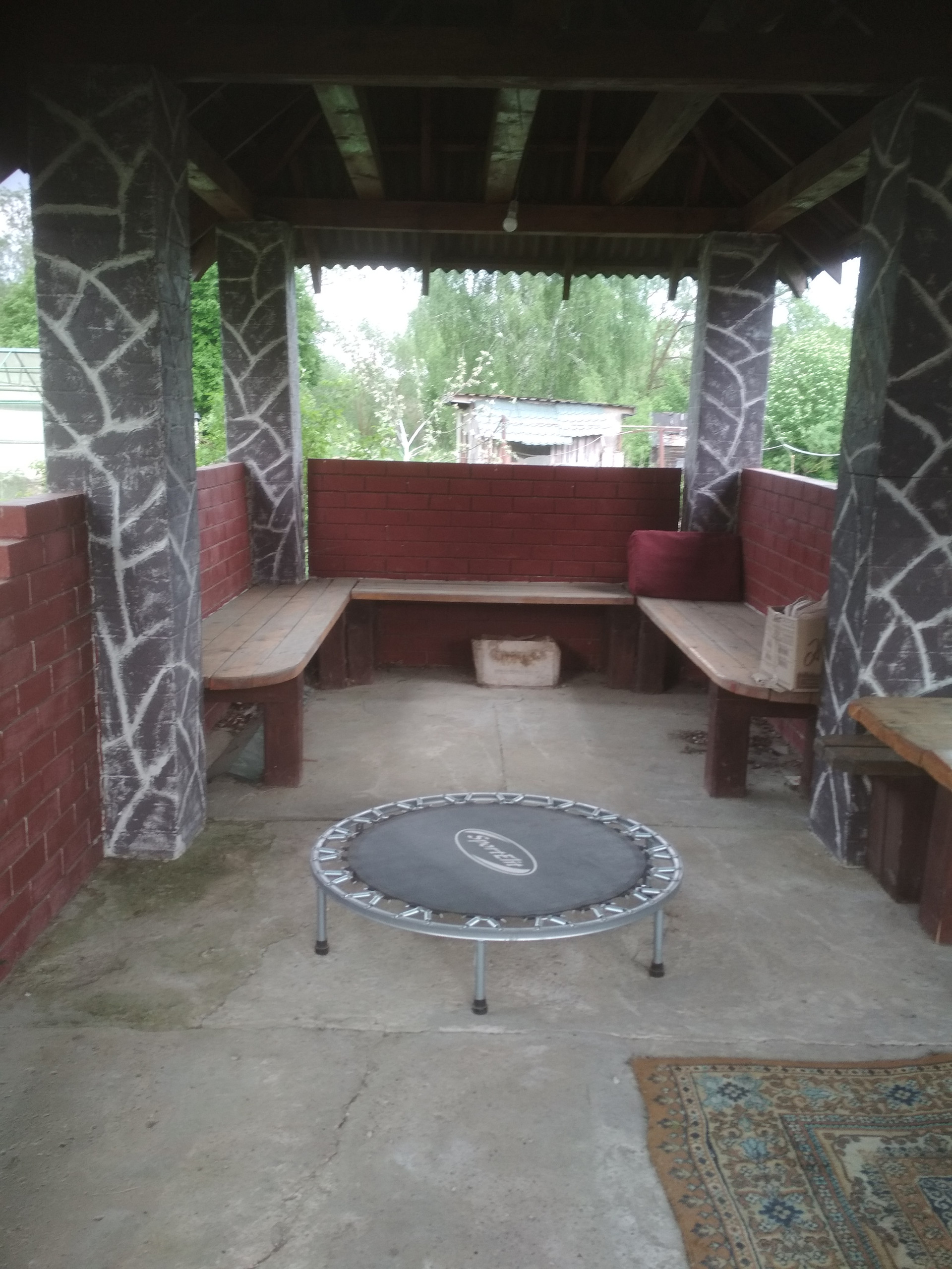 Во дворе- большая кирпичная беседка с тондиром, с барбекю, сарай для кур, большая теплица, грядки с клубникой и грядки для овощей и зелени. Сухой спуск к воде, установлены мостики.