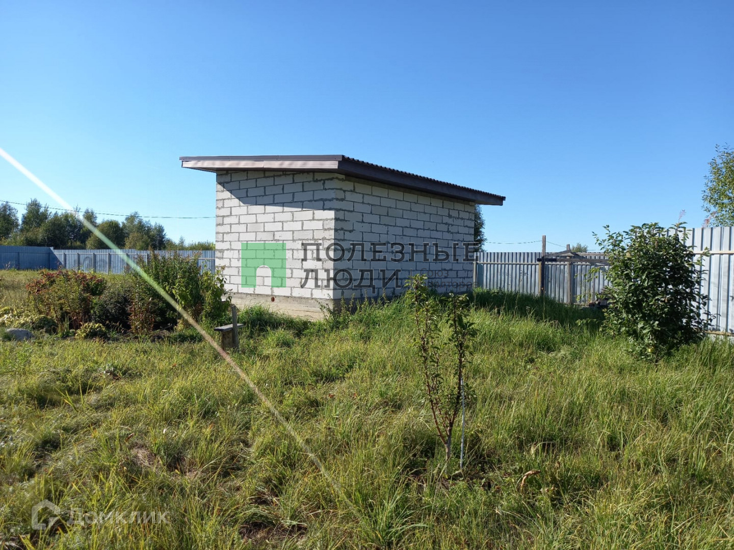 Участок 15 соток, ровный, сухой . Огорожен забором из проф. листа по периметру. Есть не много плодовых- ягодных деревьев и декоративных кустарников, кусты плодовые. Участок размежеван.  На участке стоит капитальная постройка из Газоблока   . Без отделки внутри , что позволит вам выполнить любую отделку по вашему желанию. Установлена хорошая входная дверь.  фундамент ленточный заливной.  Электричество круглый год, заведено в дом ( Сделана разводка).  Водоснабжение-скважина  .  Круглогодичный асфальтный подъезд до Участка. Дружелюбные соседи. В деревне есть круглогодичный магазин. Хорошее транспортное сообщение с городом. Ходит автобус № 107 по расписанию. Великолепное месторасположение и Отличный вариант  для постройка вашего загородного  дома !