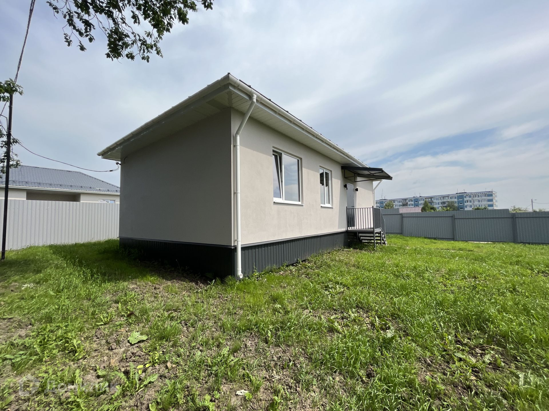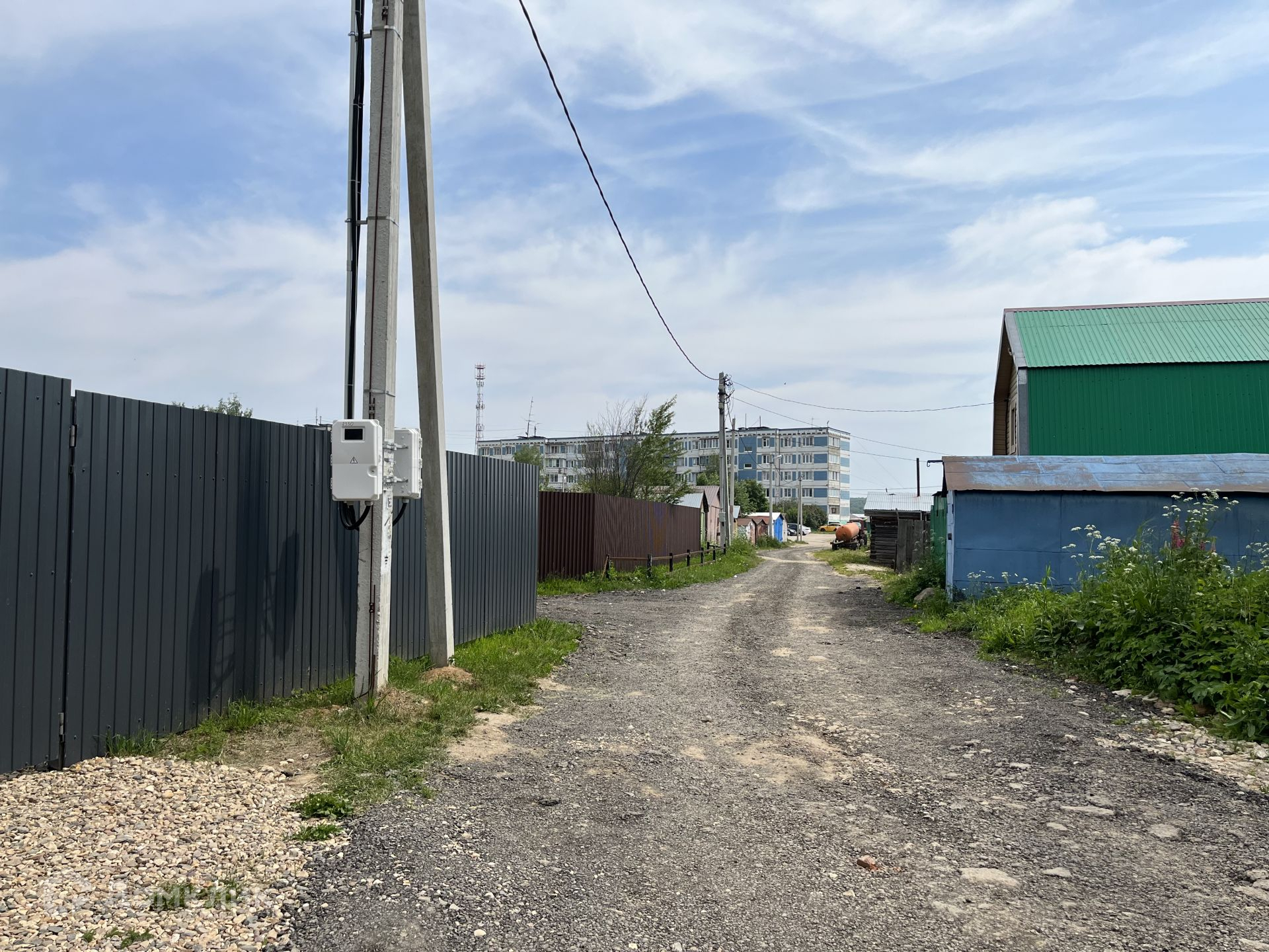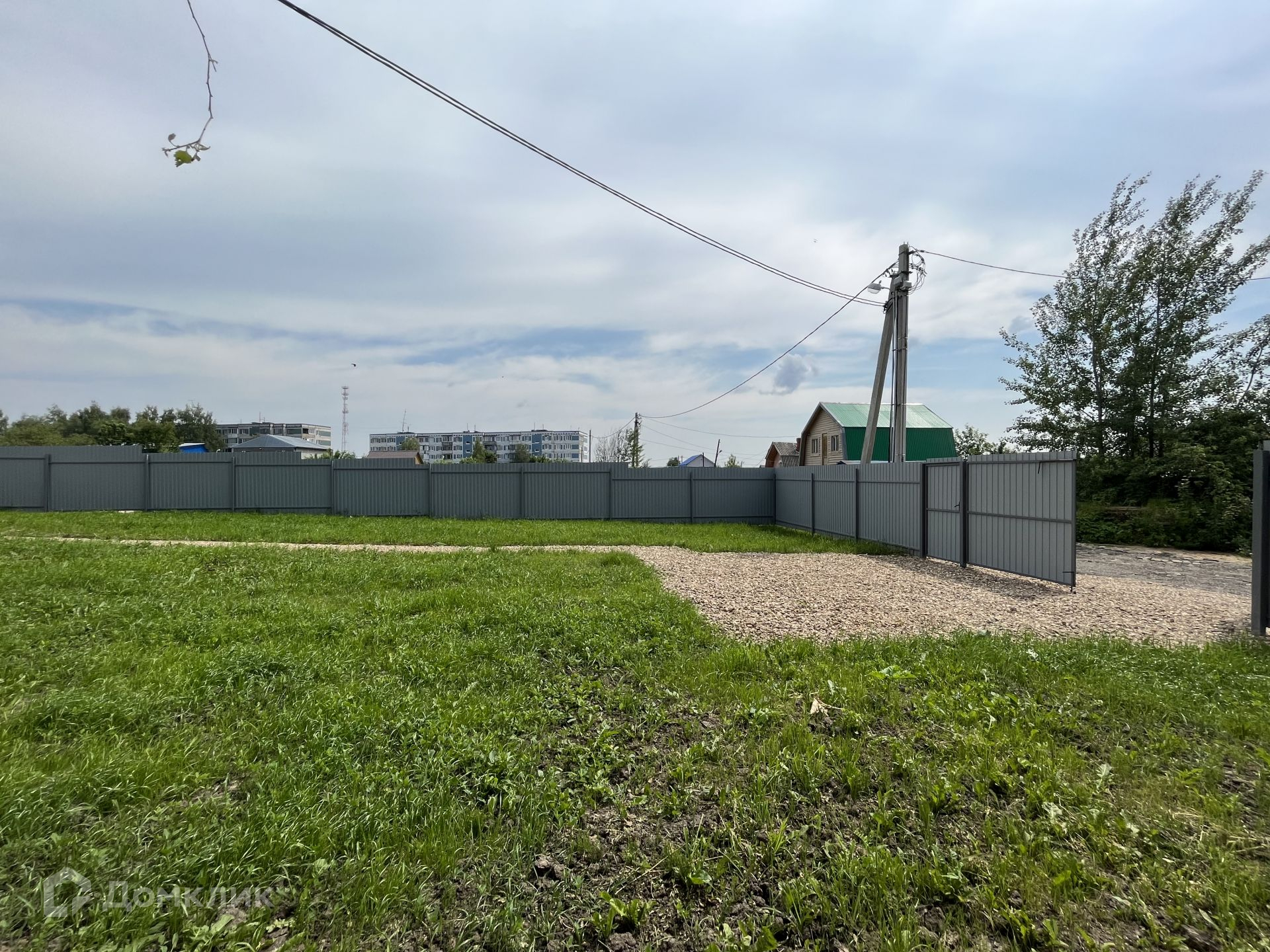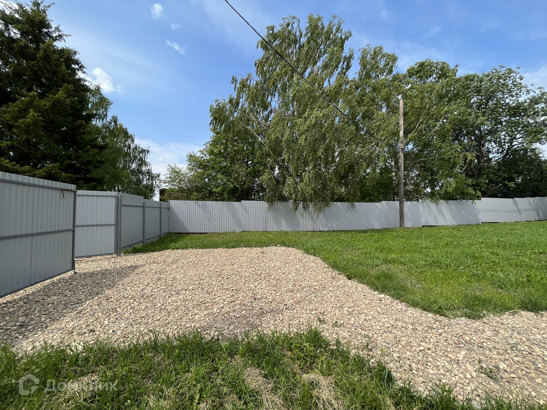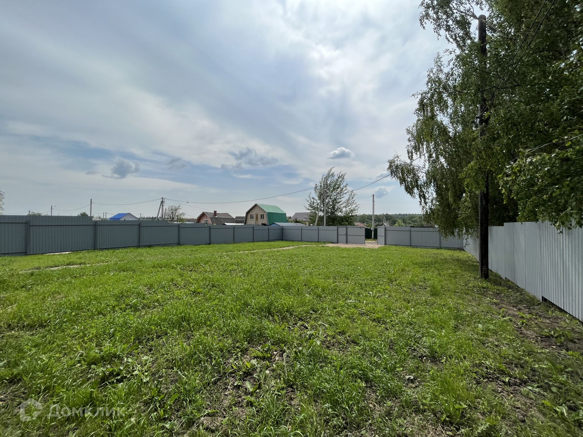 Участок 6 соток, сухой, ровный, правильной формы, имеет небольшой уклон. Забор из профлиста на металлическом каркасе. Площадка из щебенки на 2 автомобиля.