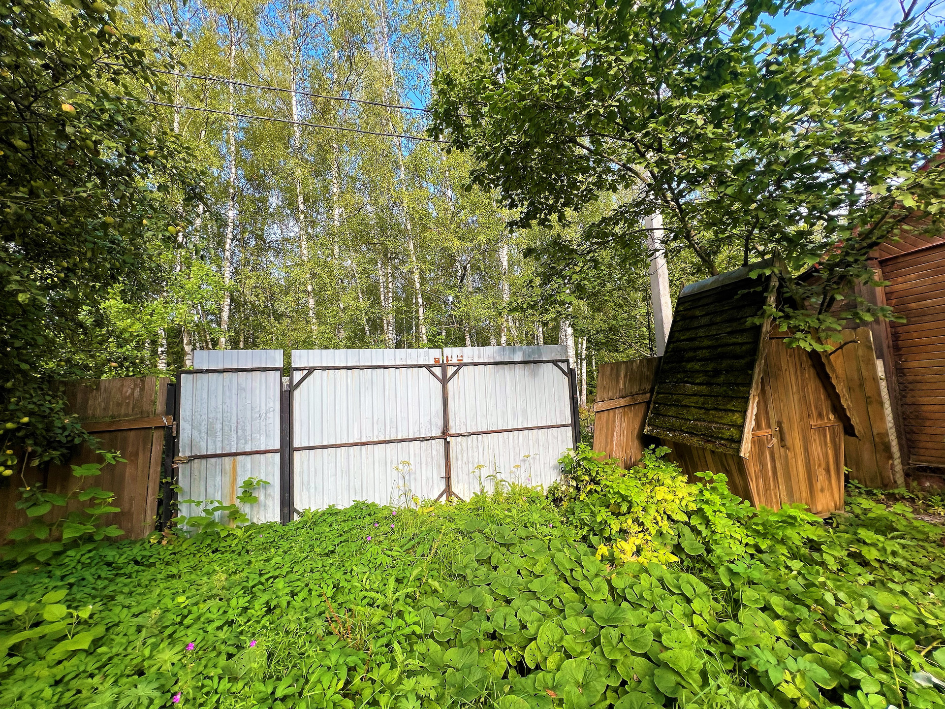 Участок огорожен забором из профлиста. Размер участка 23х24,5 метров.