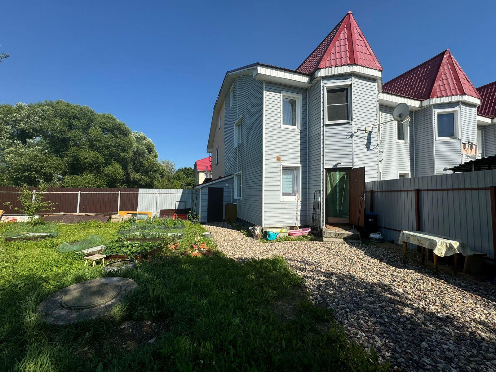 Продается квартиру в таунхаусе, 2 этажа + мансарда (комната с окном). На 1 этаже, прихожая, кухня с гостиной, ванная совместная с санузлом (установлена ванная) бойлер 50л,. На 2 этаже комната 17 кв.м. с небольшим балконом, 3 этаж небольшая комната 10 кв.м.(мансарда). Участок отделен перегородкой. Участок по документам 1 сотка, но по факту около 6 соток, которыми можно пользоваться и оформить в собственность, на участке высажены кустарники и несколько небольших грядок. Соседи живут круглогодично. Есть возможность провести газ. Канализация септик. Отопление электрическое. Так же пвыполнена разводка батарей по всему дому. Бойлер в ванной на 50 л.