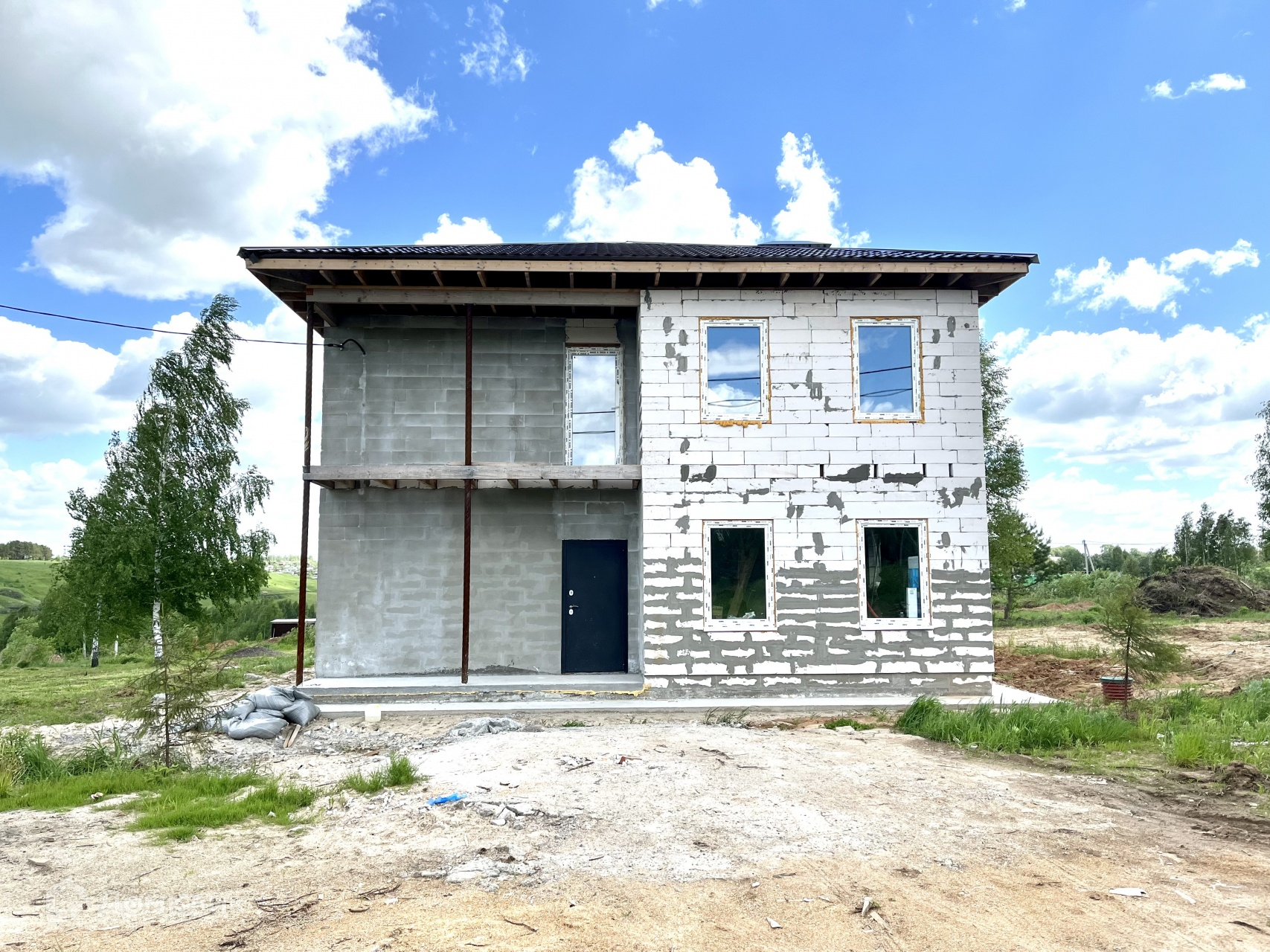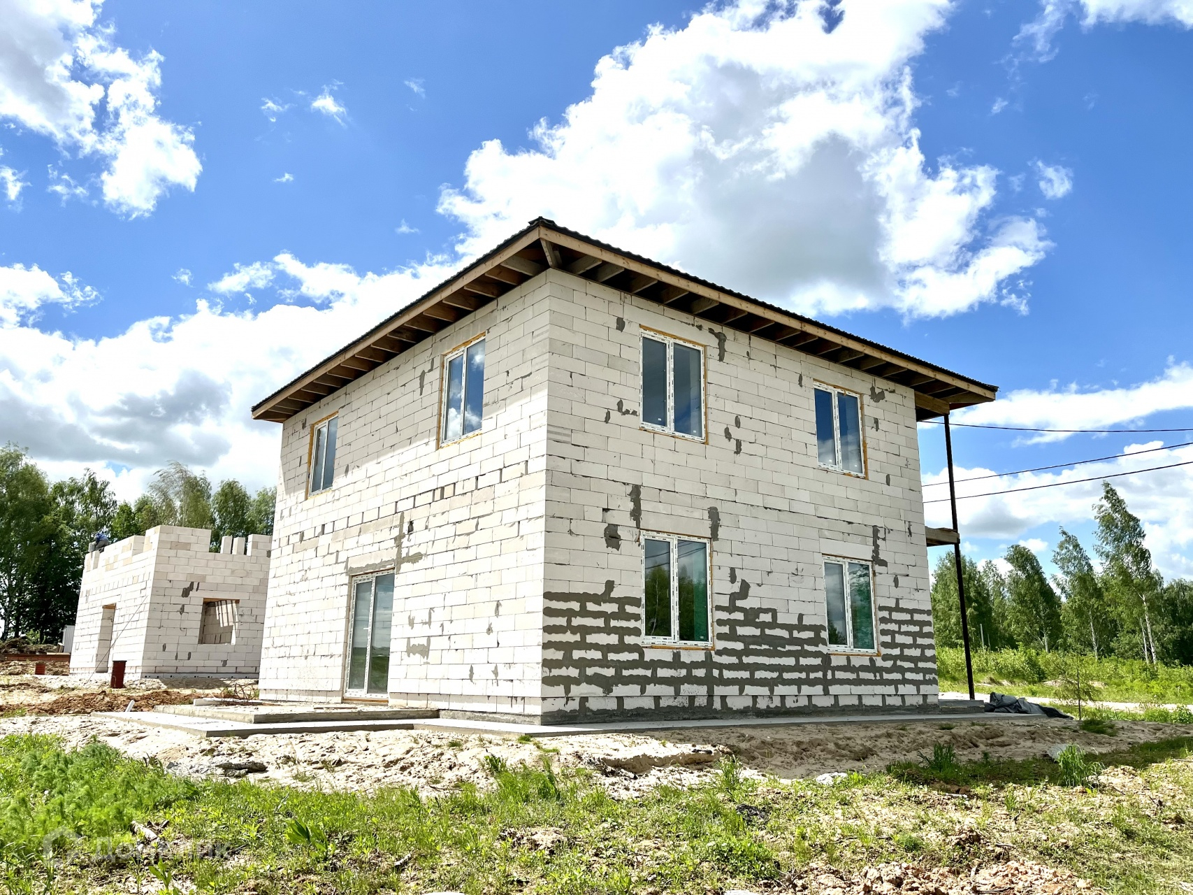 Дом 2021 года постройки, материал стен: газосиликатный блок 300 мм + утеплитель, фасад короед, толщина стены 350мм, окна двойной стеклопакет, крыша металочерепица, фундамент ленточный и бетонная плита. Коммуникации - электричество 380 V, вода скважина, газ возможно подвести за дополнительную плату, разрешение получено!  Дом построен качественно, ровно, соблюдены все необходимые требования и нормы при строительстве, в этом вы можете убедиться лично при просмотре. Вам останется сделать ремонт по своему проекту.