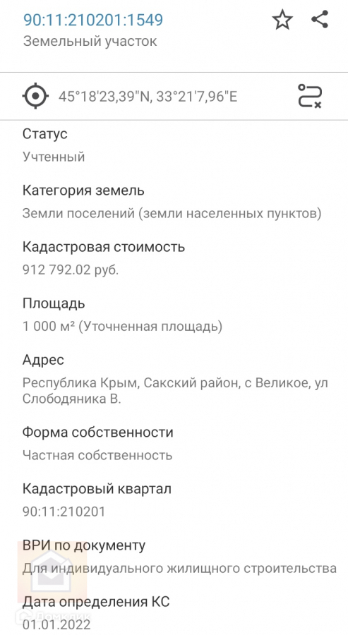 Кадастровый номер участка - 90:11:210201:1549