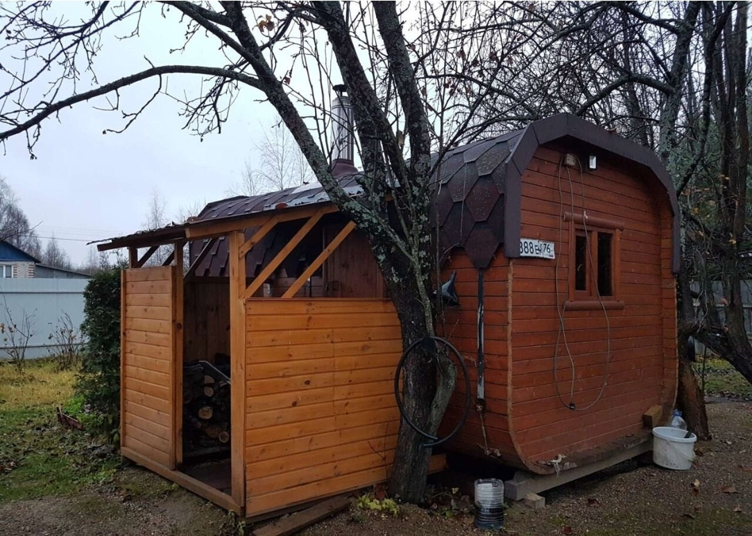 На участке имеется баня-бочка, участок частично огорожен забором из профлиста.
