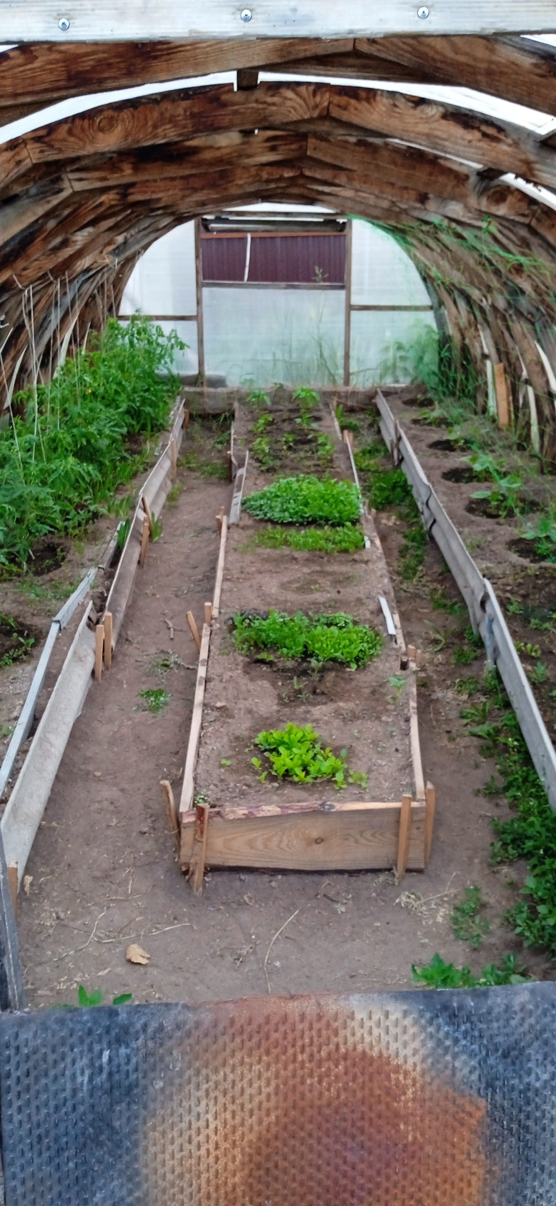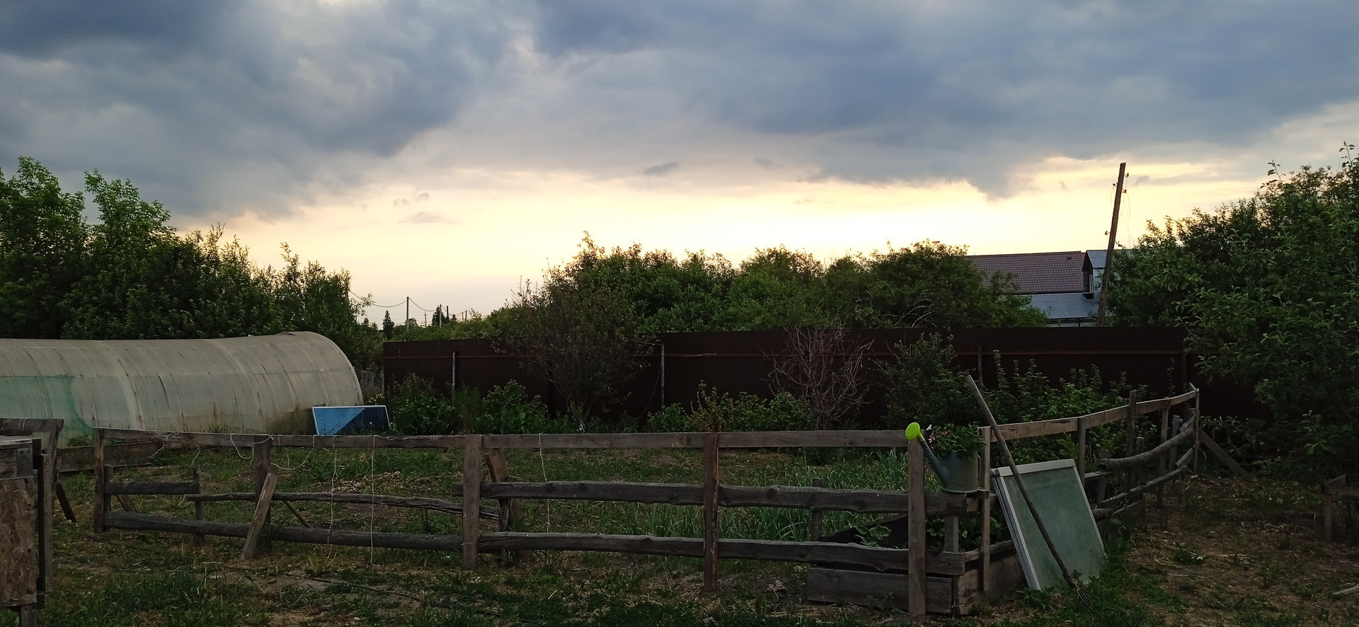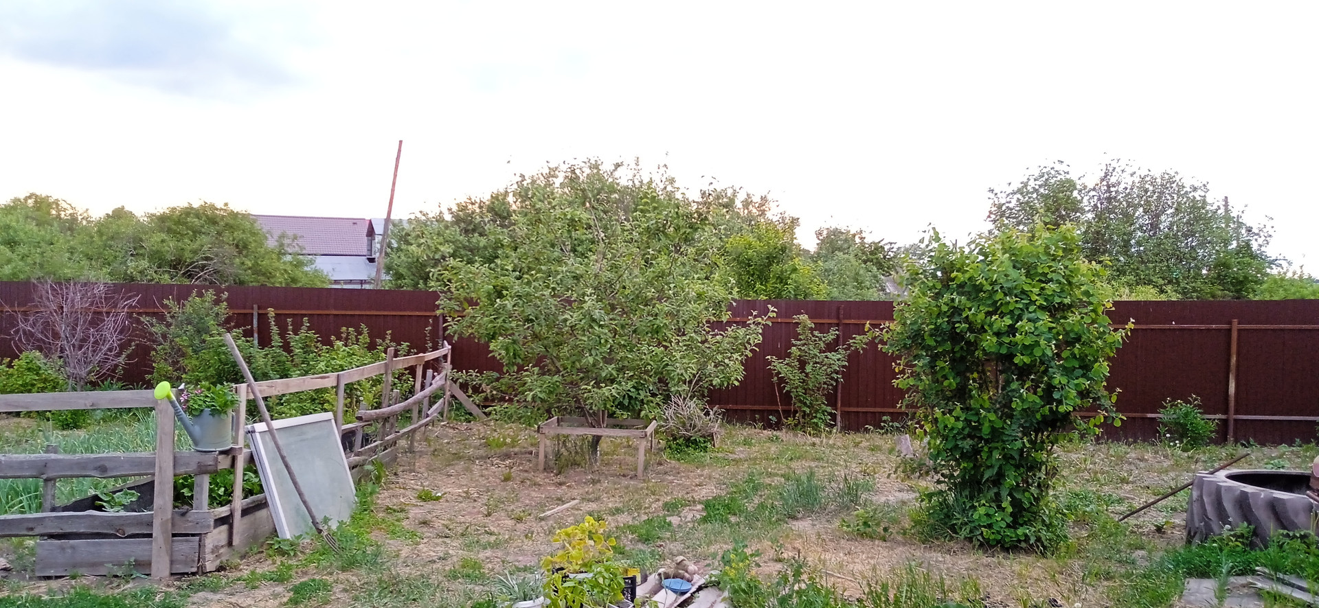 На участке расположена теплица,яблони,груши,смородина черная,красная.,крыжовник.клубника,малина.вишня а также много декоративных растений.