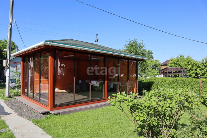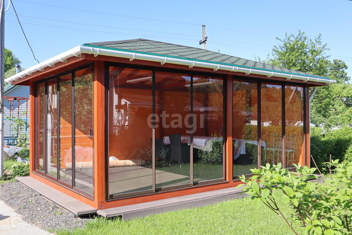 Также на участке расположена новая и отличная  баня, камни для парной привезены из юга. Прекрасная остекленная беседка премиум класса, зимой можно отапливать, проведен свет, панорамное остекление, двери раздвигаются.