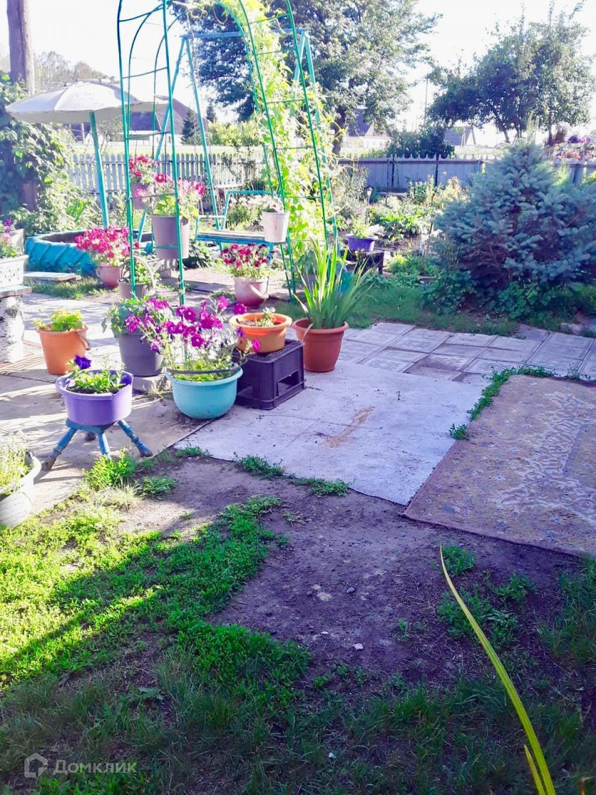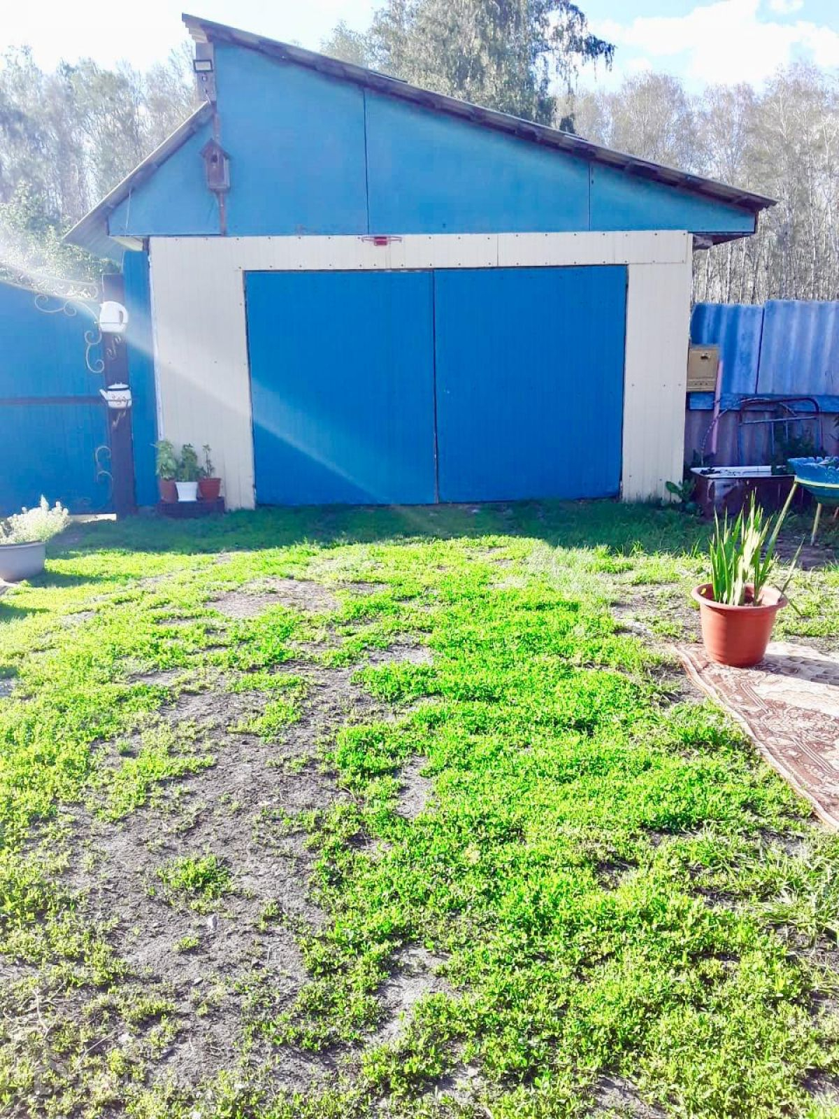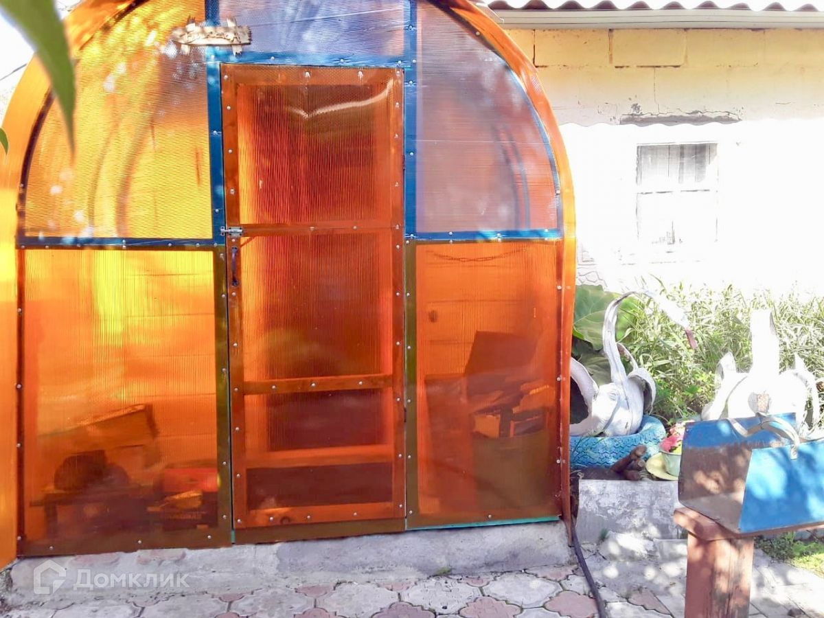 В огороде теплица, огуречная грядка(деревянная), есть беседка для отдыха.