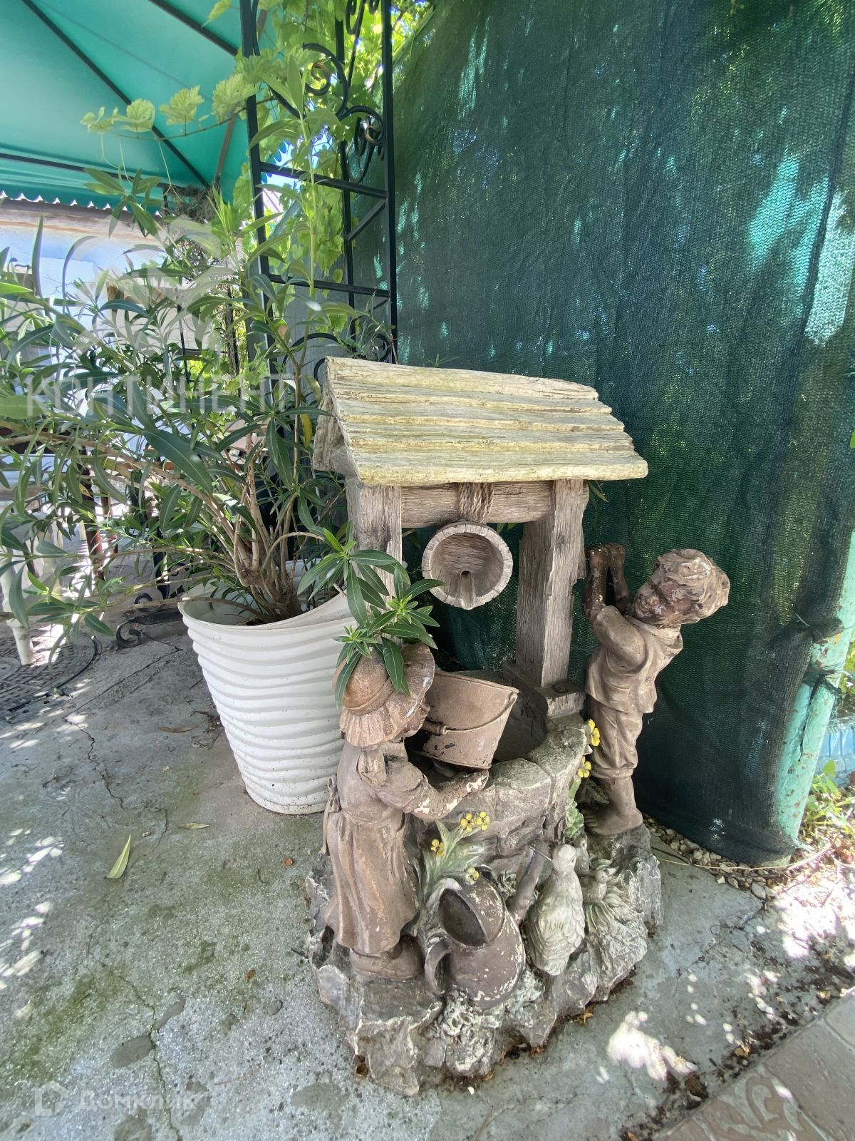 Во дворе высажены фруктовые и декоративные хвойные деревья и кустарники, виноград.