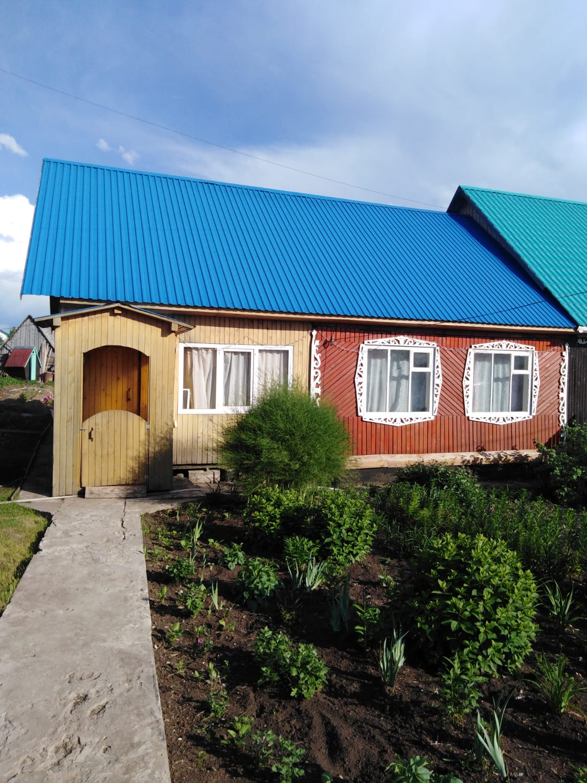 Продадим квартиру в двухквартирном брусовом доме. Общая площадь дома 46 кв.м. Участок 11соток, огород  ухожен, посажен.(бонусом). Комнаты кухня, зал, спальня, натяжные потолки, пластиковые окна.  Сан узел с канализацией. Центральный водопровод. Новая баня, дровяник, хоз постройки. 100 метров до реки Бия.2018 году сделан кап ремонт крыши, новая веранда, пристройка, крыльцо, все под дерево ( кедровая евровагонка ) Село находится  вдоль центральной трассы Телецкий тракт, 20 км  райцентр Турочак, 45 км   Телецкое озеро.
