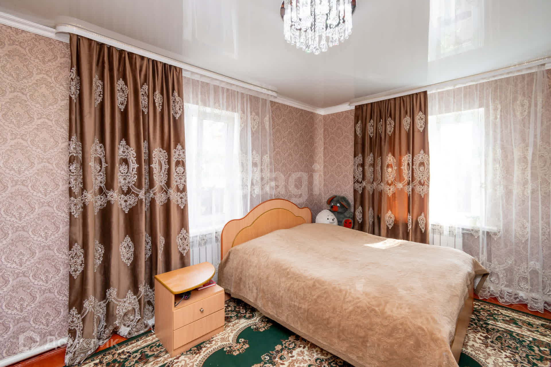 Продается капитальный, благоустроенный дом 130 кв.м из 18 ого бруса, перед домом территория забетонирована. В доме сделан современный ремонт из качественных материалов, хорошие межкомнатные двери, пол осп покрашен, натяжные потолки. В доме 3 спальные комнаты, гостиная, две прихожих, кухня, санузел совмещен, установлена душевая кабина. Забор из профлиста, ворота откатные. Все коммуникации в дом заведены горячая и холодная вода, скважина, канализация. Есть добротная баня, большой гараж под 2 машины, различные полки для инструментов, есть смотровая яма. На участке имеются насаждения (смородина, черёмуха, облепиха), огород, теплица, летний домик ( 4×4). Очень хороший уютный дом для большой семьи. Школа и детский сад в шаговой доступности от дома. Остановка в 10 минутах от дома, ездит рейсовый автобус (106,115) каждый час Документы на дом в процессе оформления, подходит под все виды ипотек и сертификатов