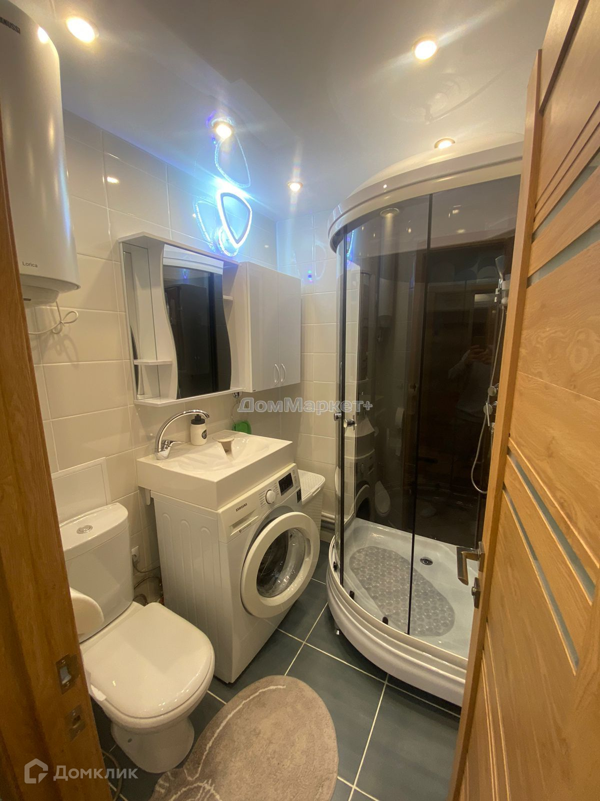 - Совместный сан узел в кафеле и душевой кабиной.