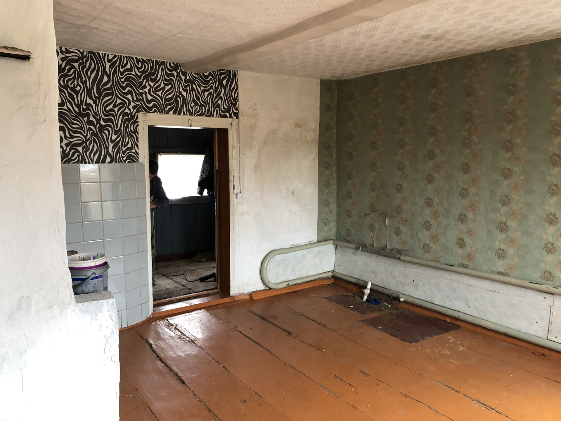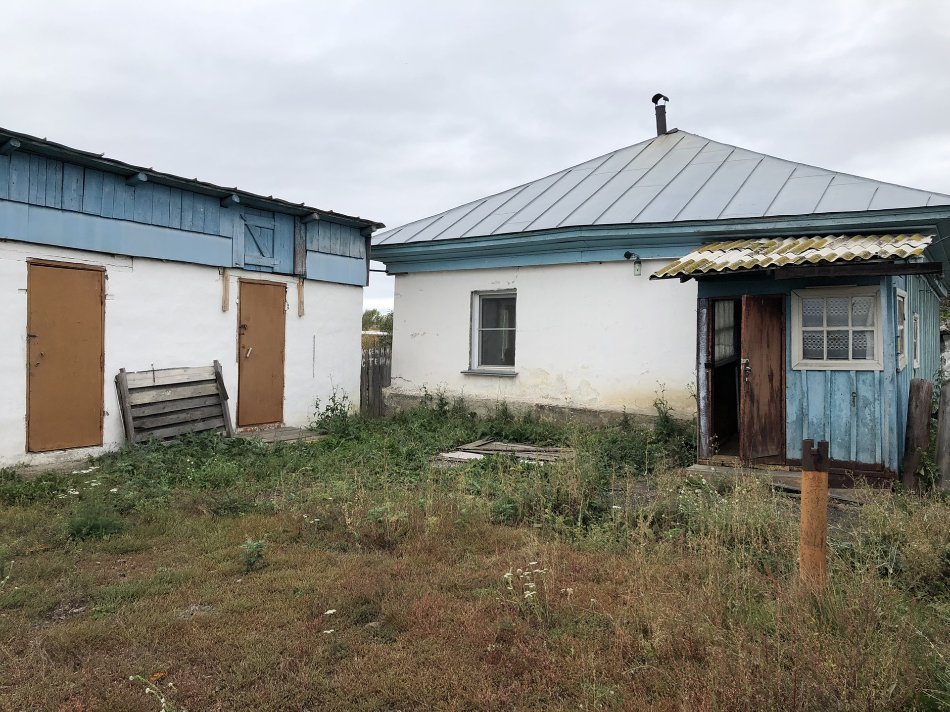 Дом литой, построен из шлакоблоков. Санузел на улице. Ванной нет, есть баня. В сенях возможно сделать туалет и душевую, предварительно утеплив. В целом дом похож на квартиру-евродвушку: объединённая кухня с комнатой и отдельно жилая комната. Печь в доме с водным отоплением. Канализации нет, вода к дому подведённая.