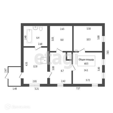 Общая площадь 60.5 м2