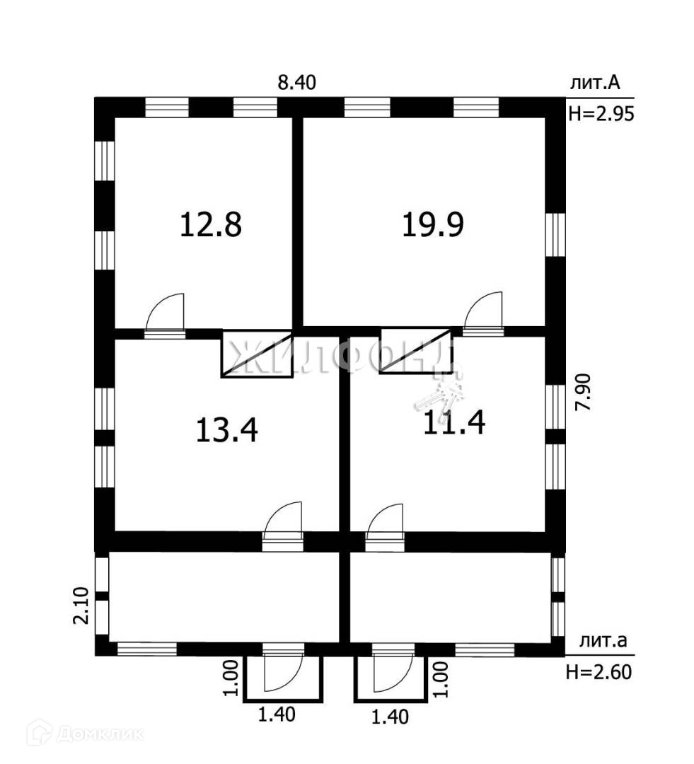Общая площадь 57.5 м2