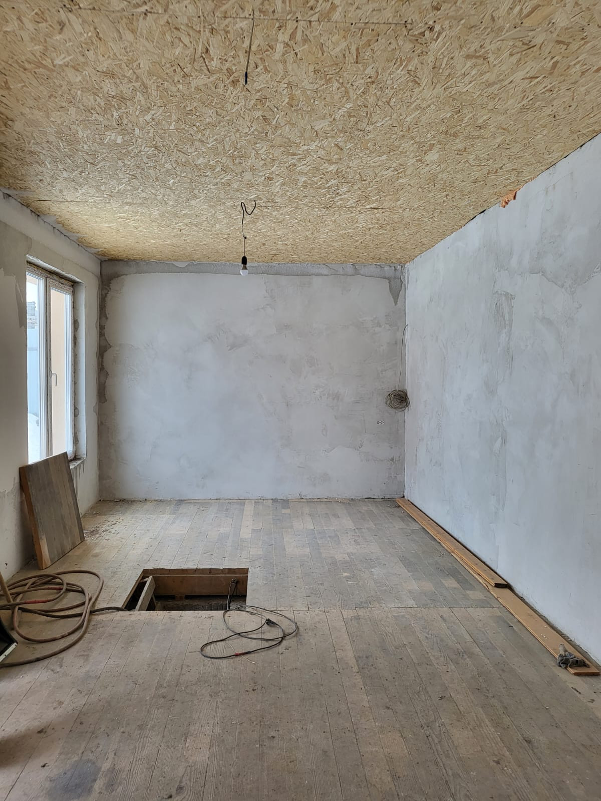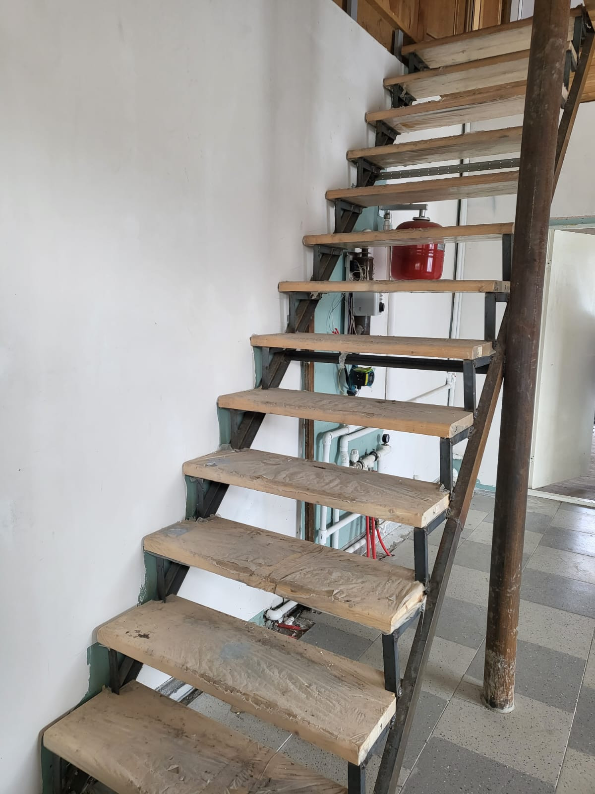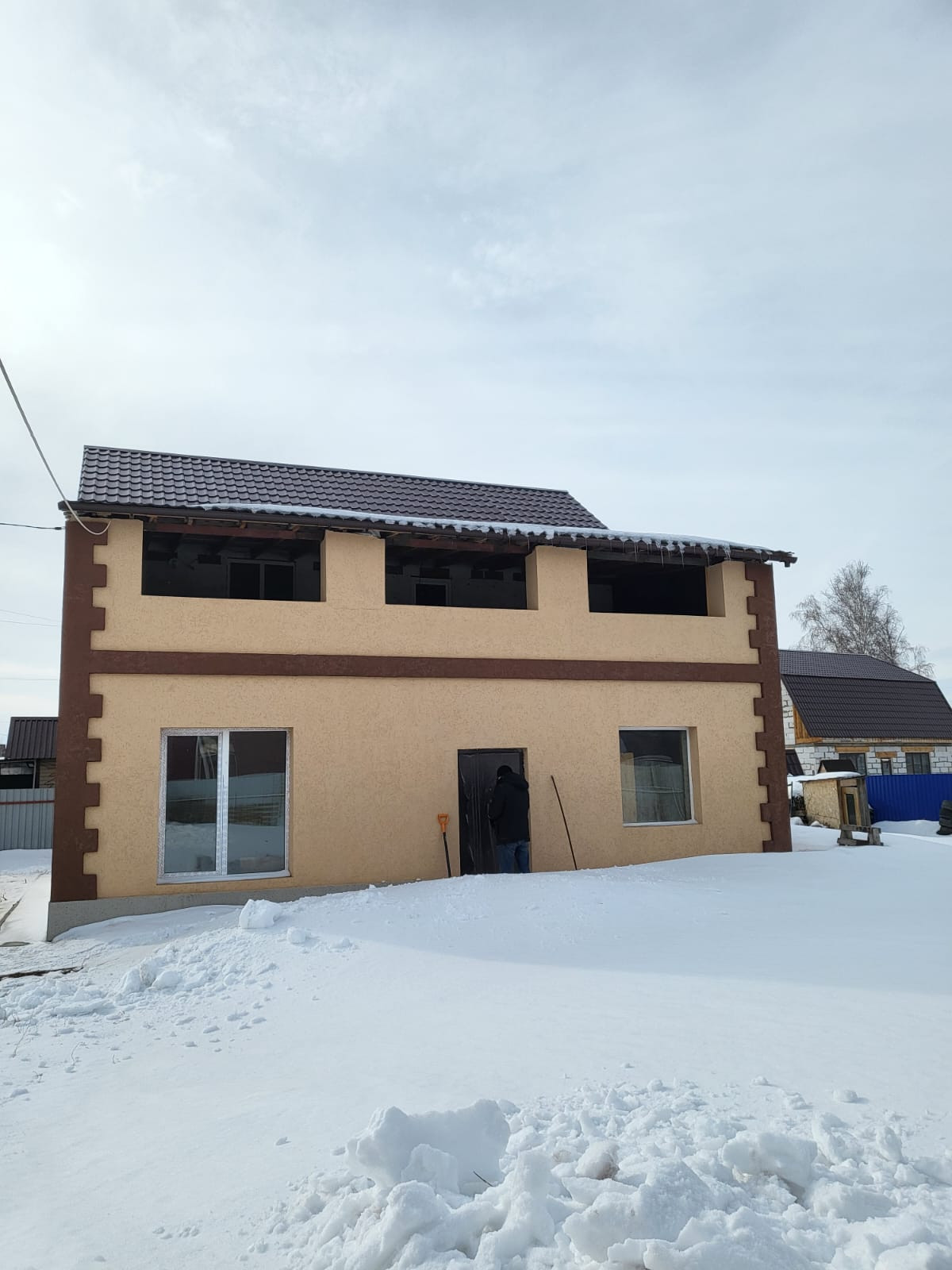На первом этаже теплые полы, выложена плитка. Внутренние помещения в разной степени готовности.