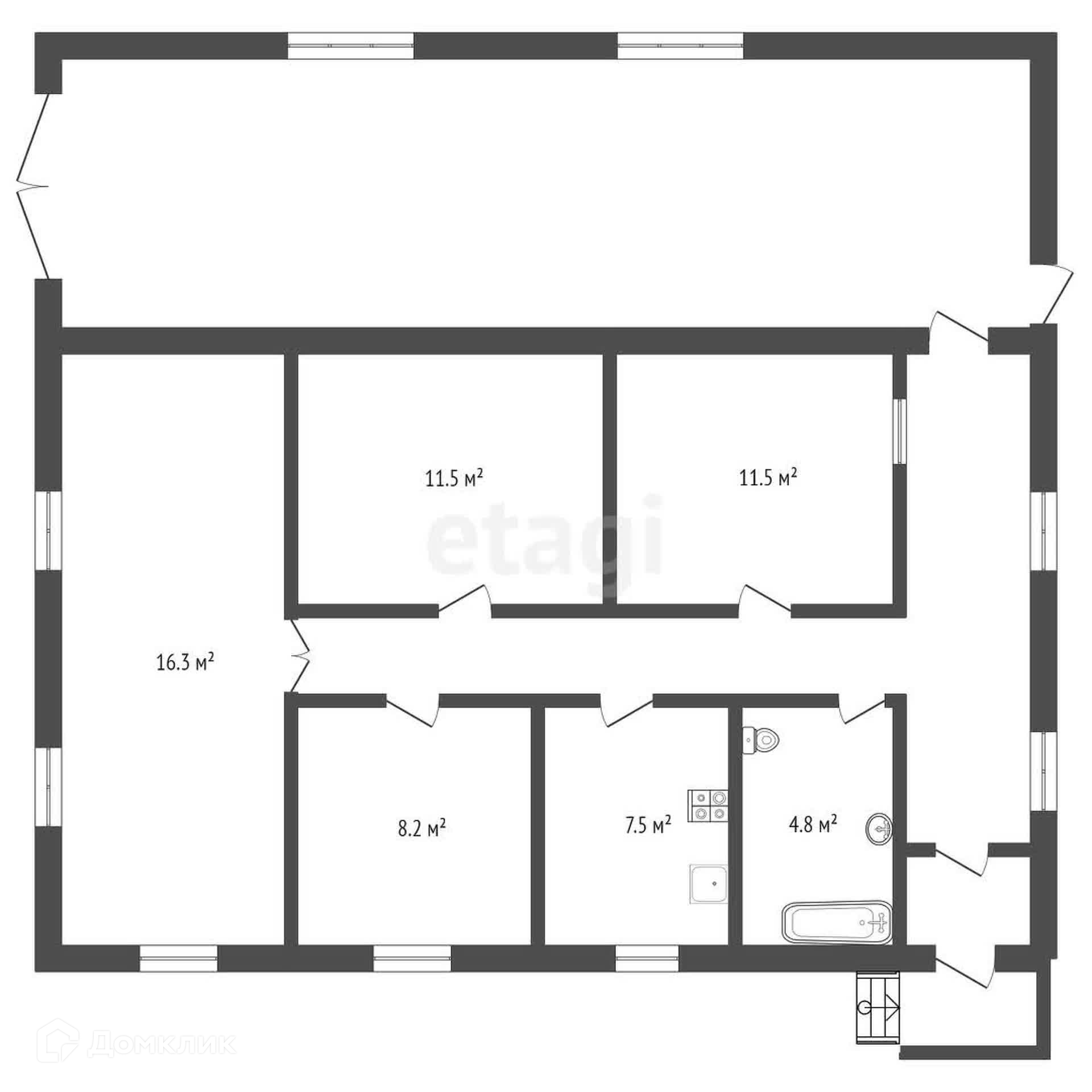 К дому пристроен большой гараж (в площадь дома не входит).