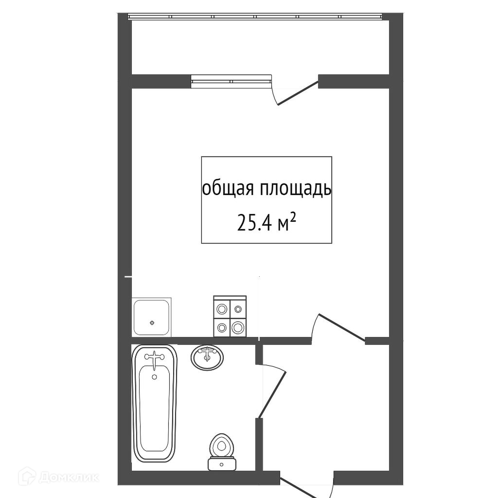 Общая площадь 25.4 м2