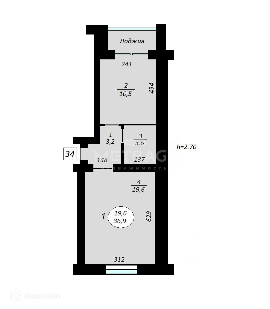 Общая площадь 36.9 м2