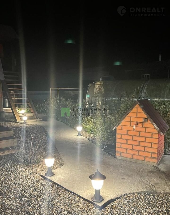 Дворовая территория отсыпана щебнем, проложены бетонированные дорожки с освещением..