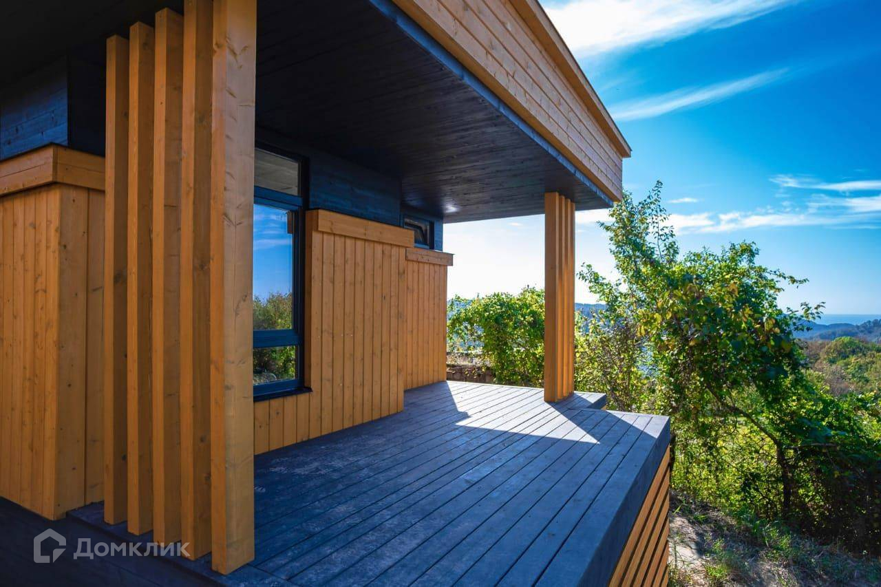 Фундамент - винтовые сваи с засыпкой цементной смесью и обвязкой. Каркас - сухая строганная доска с огне-биозащитой. Утеплитель - плиты мин.вата - 150 мм. Парогидроизоляция. Окна панорамные с ламинацией и напылением от уф. Кровля мягкая технониколь.Дома с большими террасами - 13,5 м2 и 20 м2. С террас открывается панорамный вид на море и горы.