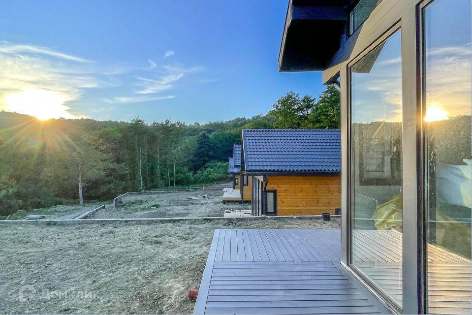 Близость к морю: 4 км, 7 минут на автомобиле по ровной дорогеИнфраструктура развита:  Школа, магазины, автобусная остановка. Аквапарк Лоо.● Фундамент: бетонные сваи● Силовой каркас из доски естественной влажности, сосна (150х150х6000 мм) и доска для подшивки потолка иукосин усиления каркаса по гост 8486-86● Обшивка дома осп 9 мм на стенах и 22 мм на полах, обшивка цсп (10 мм)● Базальтовый утеплитель плотностью 40 кг/м3 «Рагос»● Обработка дерева огнебиозащитой● Внутренняя отделка: потолок - вагонка (класс А), стены – имитация бруса (класс А)● Отделка фасада согласно визуализации, имитация бруса (класс А)● Кровля металлочерепица с-28 (0.45)● Остекление krauss 3 кам, толщина армирования: 1,2 мм● Лестница из шлифованой доски камерной сушки (50×150мм)